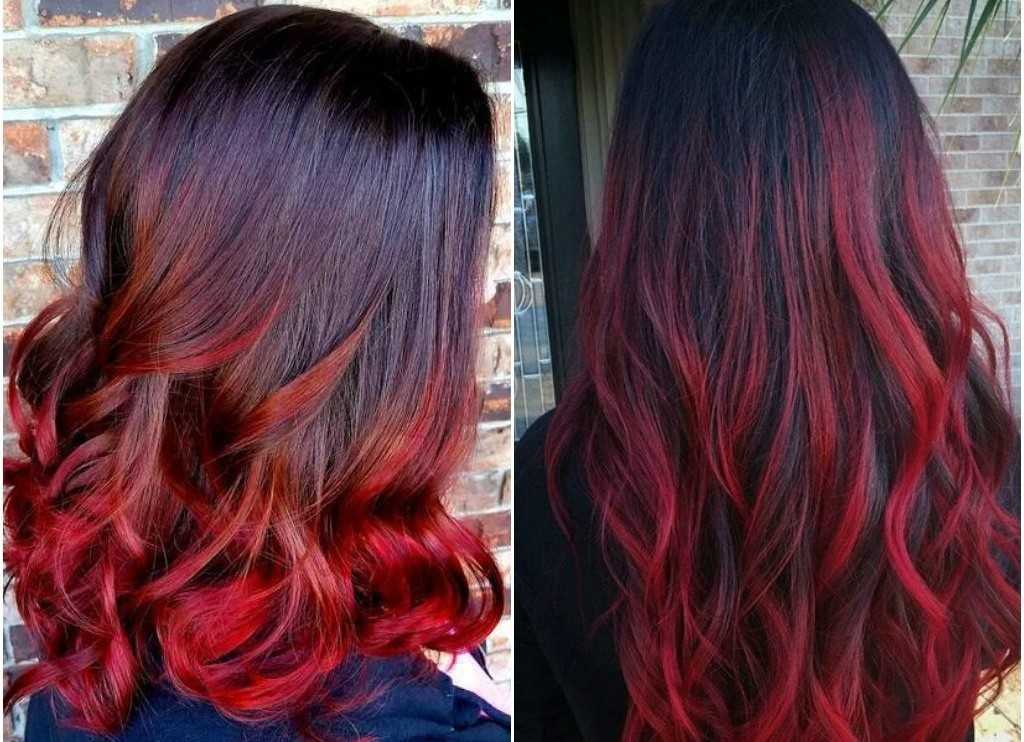Красная краска на концах уместна также для целеустремленных модниц. Но если выбираете такие оттенки, учитывайте, что с каждым мытьем головы краска будет тускнеть. Поэтому старайтесь применять безсульфатную косметику для мытья прядей.