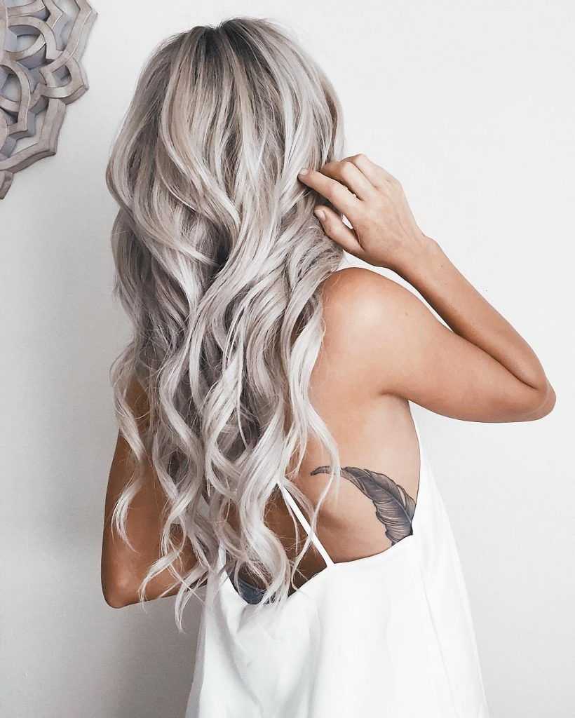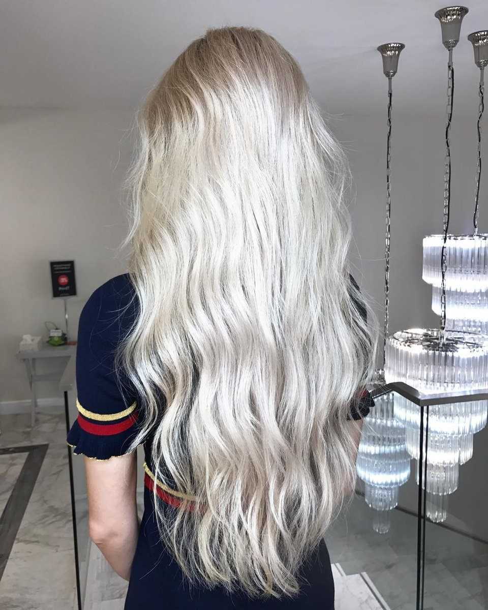 Серебристый блондин. Жемчужный блонд лучше осуществлять в однотонном виде. Мелирование или чрезмерные переливы потеряют игру палитры. Жемчужный блондин – цвет, глубина которого заметна при одинаковом цветовом соотношении. А также при равномерном распределении на прядях.
