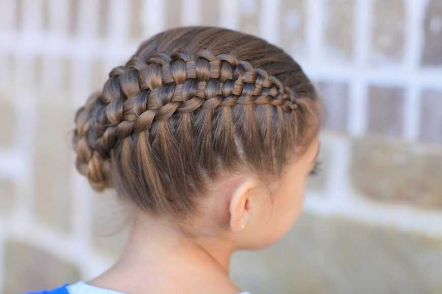 Плетение в моде, поэтому такая прическа подойдет как школьницам младших классов, так и старшеклассницам. Годится она как на длинные волосы, так и на средние. Вам понадобятся силиконовые резинки и шпильки.