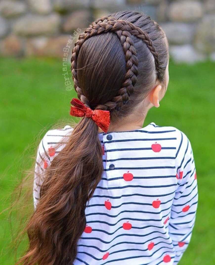 Прически в школу за 5 минут могут выполняться из конского хвоста. Укладка смотрится стильно и необычно, если использовать следующие варианты ее выполнения: