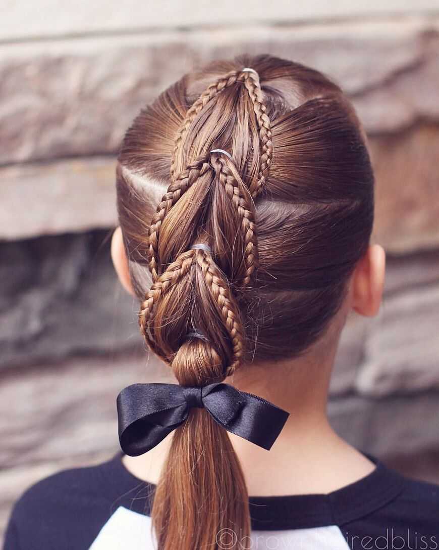 Обычный хвостик для вас слишком примитивный? Тогда вот укладка в школу для девочек из трех соединенных хвостов, который точно вас порадует.
