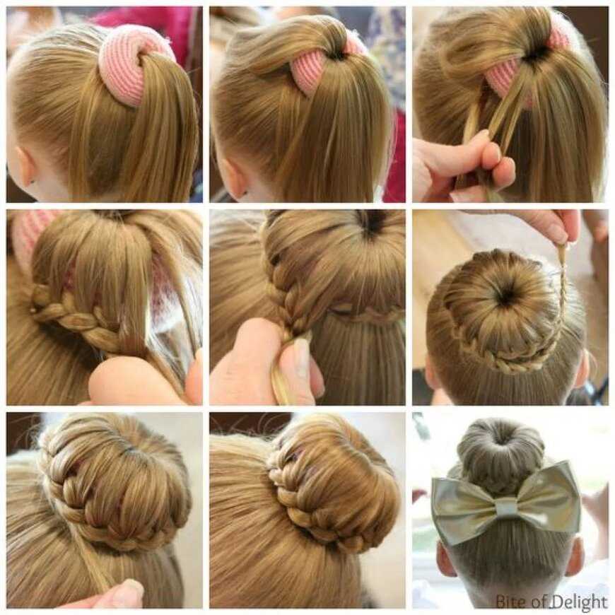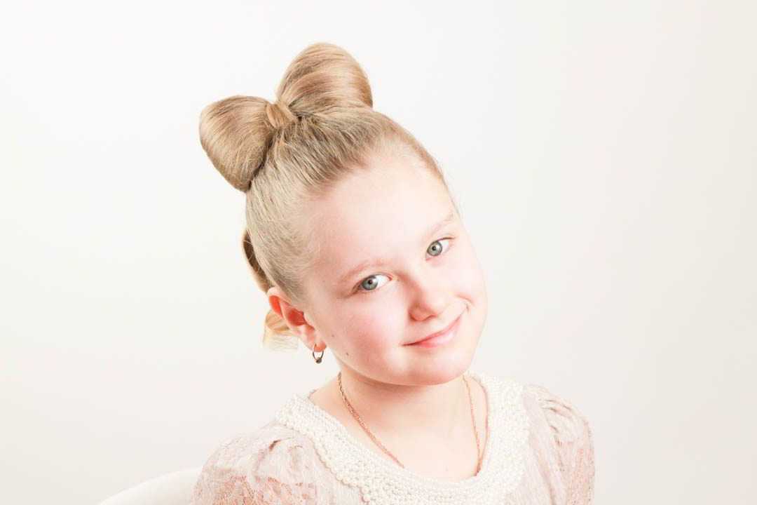 Второй вариант пучка потребует чуть больше времени и навыков для исполнения, зато полученный результат порадует и маму и дочь. Такой пучок подойдет и для маленьких девочек, и для подростков, ведь получившаяся прическа придает облику нежность и изящество.