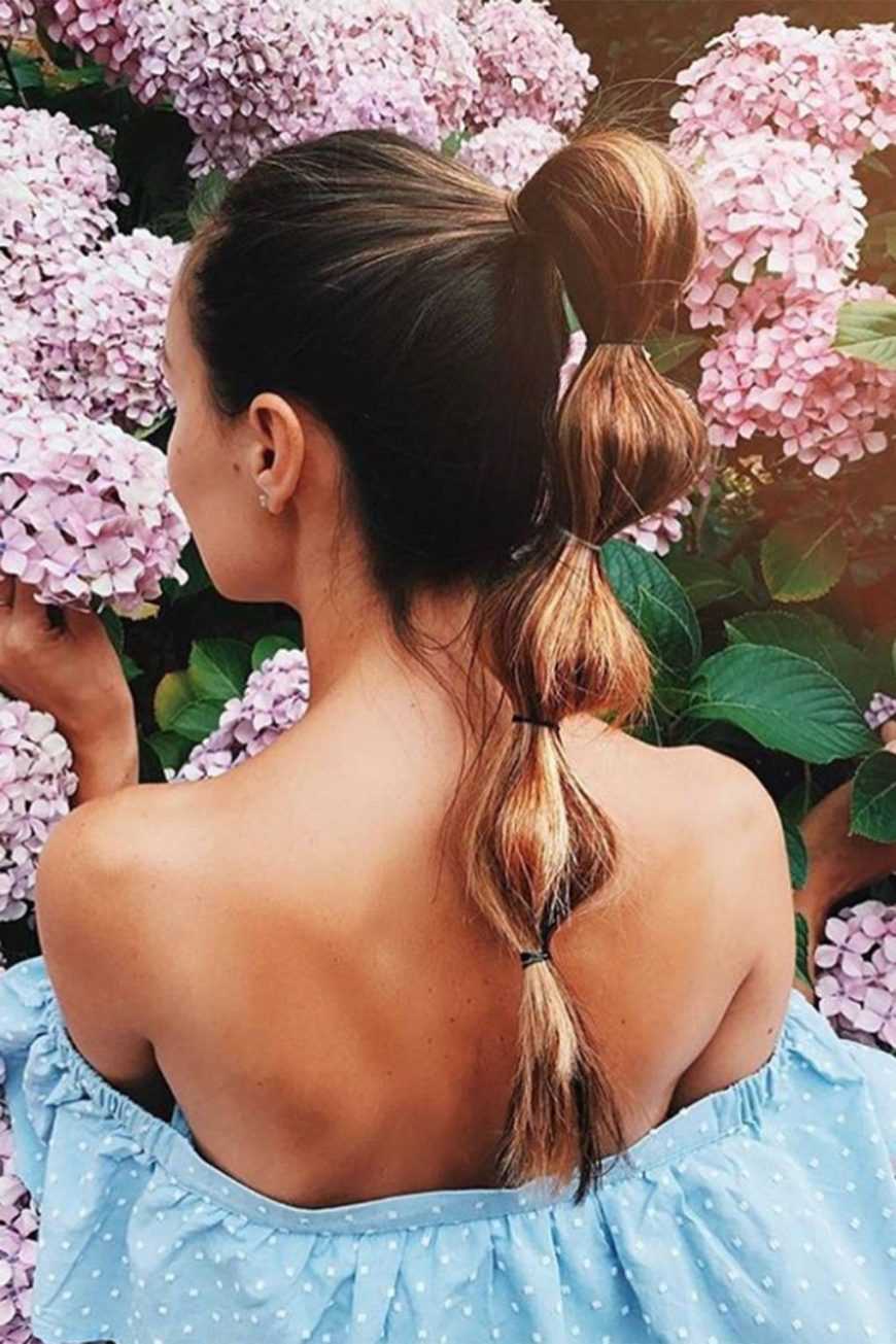 Отличный вариант для осени. Пузырьковые косы смотрятся стильно, держатся весь день. Это любимая прическа TikTok-инфлюенсеров. Понадобится расческа, несколько резинок. Можно использовать средство для укладки.