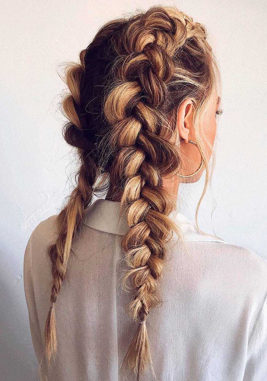 Запаситесь силиконовыми резинками подходящего цвета. Стиль плетения имеет схожесть с французской косой, заплетенной наоборот. Другими словами, нужно плести, делая подборы с двух сторон, прокладывая пряди не сверху, а снизу. Поверх основной косы плетем еще одну – тонкую. Можно использовать аналогичную технику или же вариант «жгут». Для этого используем прядки, отделенные от основной косы при плетении.