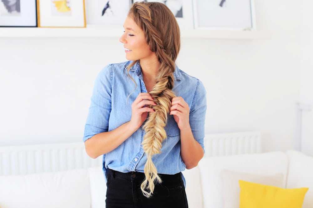 Когда коса будет готова, зафиксируйте ее резинкой и выпустите боковые пряди, чтобы она выглядела объемной и пышной. Это придаст прическе романтичность, небрежность, сексуальность. Рыбий хост, на самом деле, легкая в исполнении коса на все случаи жизни. Она смотрится элегантно, утонченно, празднично, но, в то же время, считается повседневной. Идеальна для свиданий.