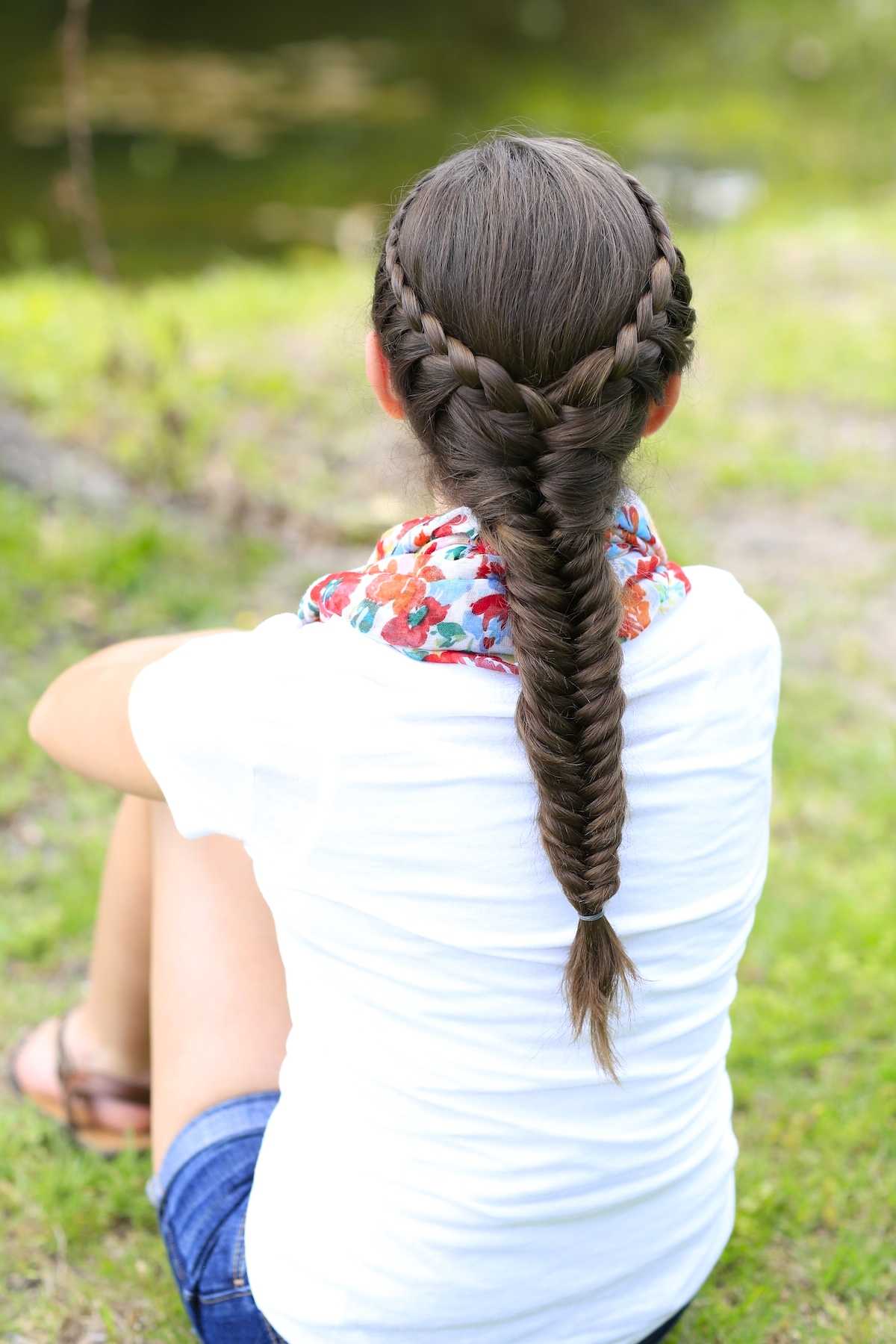 Косу «рыбий хвост» хорошо сочетается с любым плетением, например, как на фото — с традиционным вариантом.