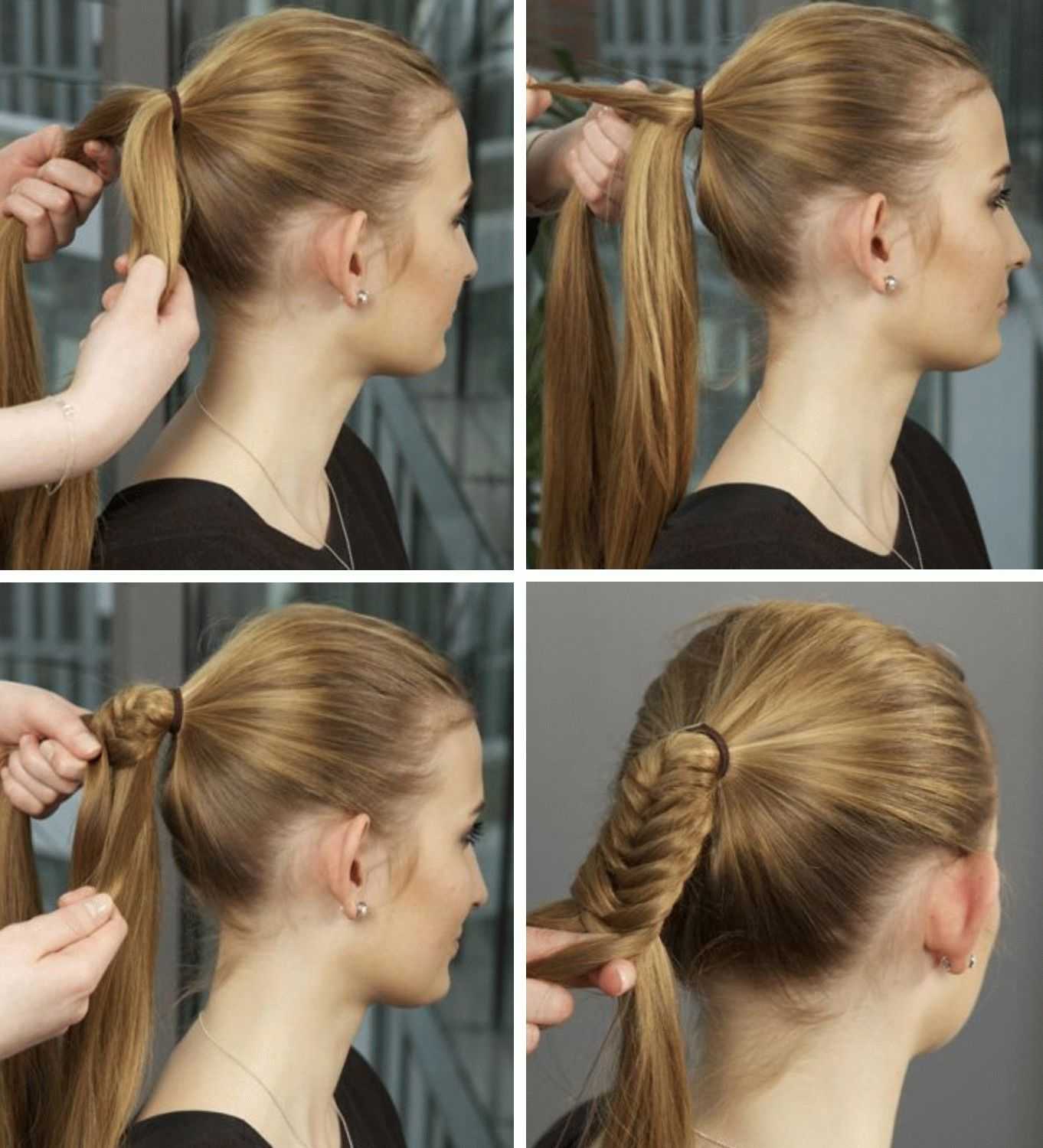 Эта техника создания «рыбьего хвоста» считается наиболее легкой в выполнении. Относительная простота достигается благодаря двум направляющим прядям, которые помогают в данном процессе не сделать ошибок.