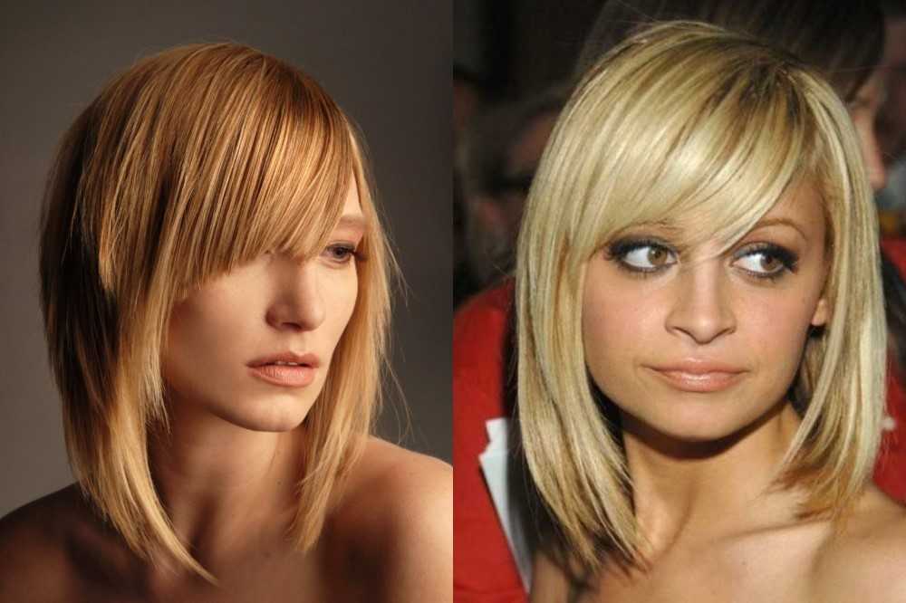 Причём, если вы остановились на первом варианте, чёлку делайте прямую, а не скошенную.