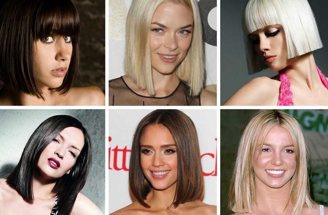 Прямой боб – это наиболее строгий вариант стрижки, отличающийся ровными срезами и четкими линиями. Многослойность отсутствует. Прическа подходит круглолицым девушкам с широкими скулами и невыразительными глазами. Прямой боб смягчит подбородок и нос, уменьшит щеки. Тип волос может быть любым.