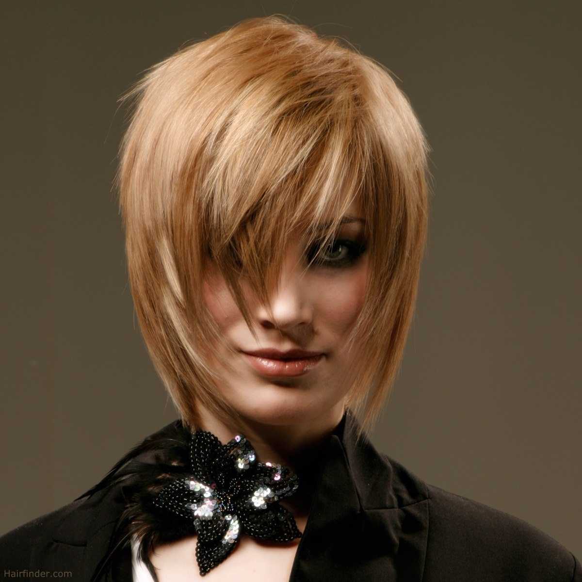 - Лица угловатого треугольного строения выглядят непревзойденно в союзе с оригинальным градуированным каскадом и ровной коротенькой челкой.