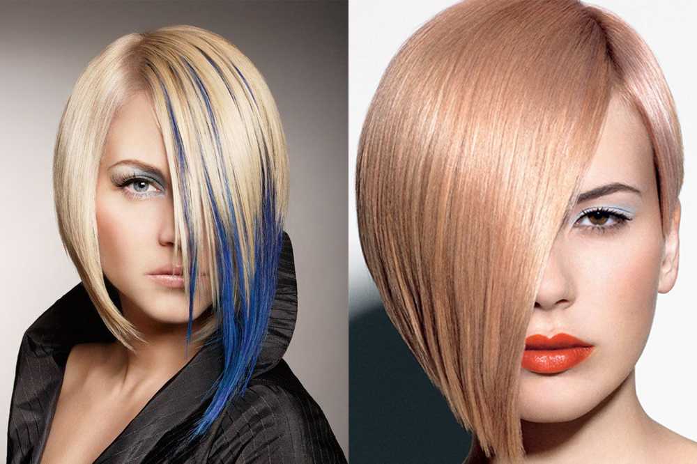 - Асимметричный боб – эта эффектная стрижка совсем недавно сошла к нам со страниц модных журналов и мгновенно нашла тысячи поклонниц. Секрет успеха асимметричного боба достаточно прост – это наличие явной разницы в длине между разными участками шевелюры. Такие стрижки для овального лица могут выполняться в любых вариациях – одна часть волос у подбородка длиннее, чем другая, выстригание прядей разной длины по всей массе волос или моделирование затылочной зоны в конической форме. Также асимметричный боб вполне увязывается с любой структурой и длиной волос, может быть усовершенствован либо дополнен любыми фасонами челок. Подобные эксперименты с асимметричностью линий можно подчеркнуть с помощью современных и трендовых методик окрашивания – балаяж, колорирование, шатуш, омбре, креативная техника совмещения палитры – каждый из этих вариантов сделает ваш облик полностью индивидуальным, неповторимым и впечатляющим;