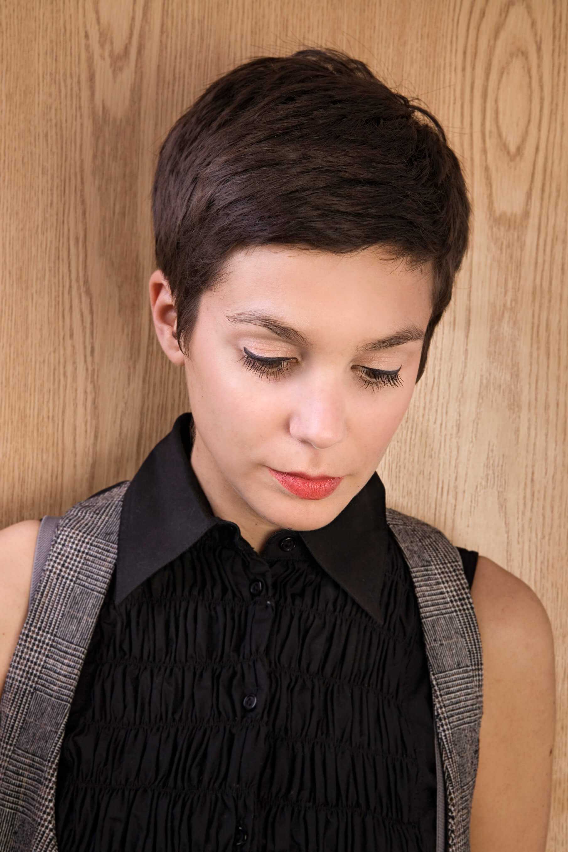 Стрижка пикси для женщин после 40 лет должна быть с большим количеством слоев, на затылке слои придадут красивую форму прическе, а также добавят текстуры и движения. А прямая челка сбоку придаст необходимую мягкость образу в целом. Слои должны начинаться с верхней части головы для плавности и управляемости (чтобы можно было легко укладывать).