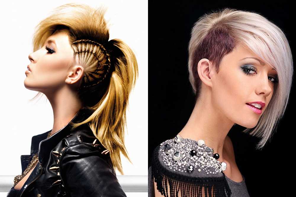 рваная прическа с асимметрией спереди, укороченная сзади, и косой челкой подойдет смелым, независимым девушкам. Любительницы эпатажа выбривают один висок;