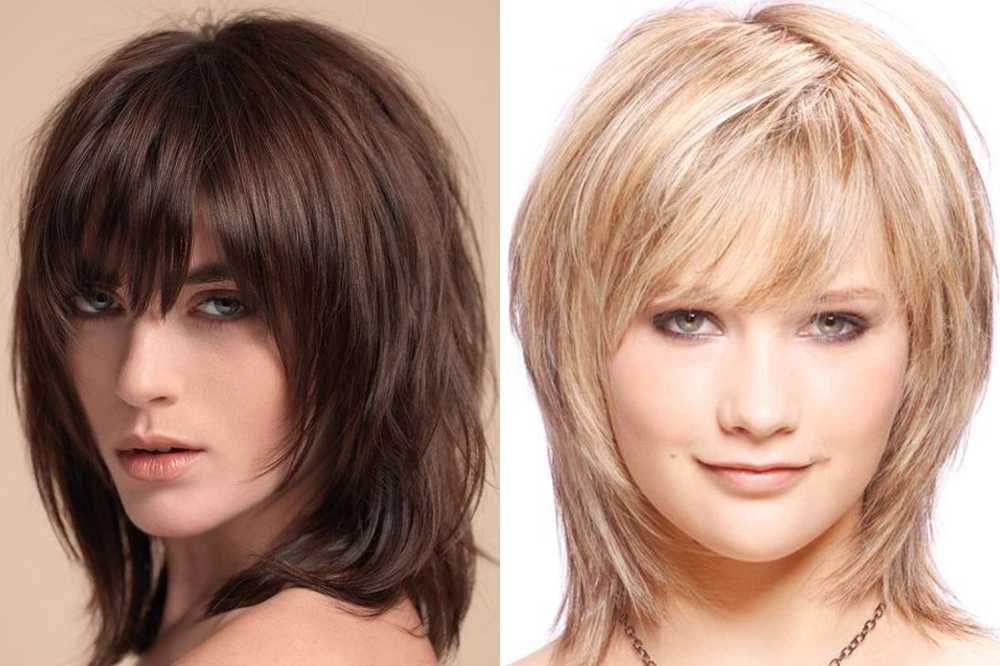 Стрижки с чёлкой не только вносят в образ новизну, но и способны искусно замаскировать широкий лоб, уравновесить непропорциональные черты лица, отвлечь внимание рваным срезом от изъянов. Причёска с длиной прядей до плеч может иметь следующие варианты формы чёлки: