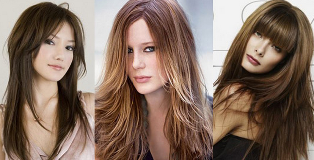 - Градуированные локоны с длинной ровной челкой, разделенной на косой пробор тоже актуальны в моде. Также можно смещать пробор в ту или иную сторону либо выполнять фигурно.