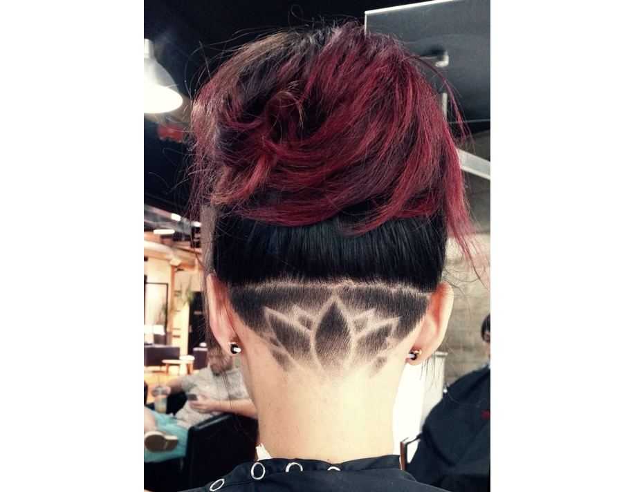 Относительно ширины выбривания особых требований нет, но стилисты рекомендуют следовать базовому принципу – чем длиннее волосы, тем выше должен быть выбрит висок. При желании выбритую часть можно прикрыть оставшимися прядями (если позволяет длина), оставив там короткий ежик, или полностью удалив волосы под корень. Сделать прическу еще более экстравагантной помогут узоры, выполненные машинкой, или интересное трафаретное окрашивание в зоне выбритых волос.