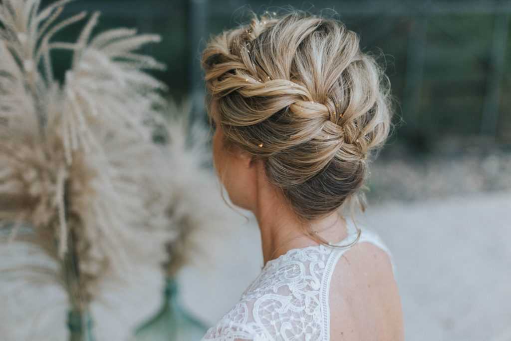 Плетения — один из наиболее универсальных вариантов свадебных причесок на средние волосы, которые можно создать собственными руками.