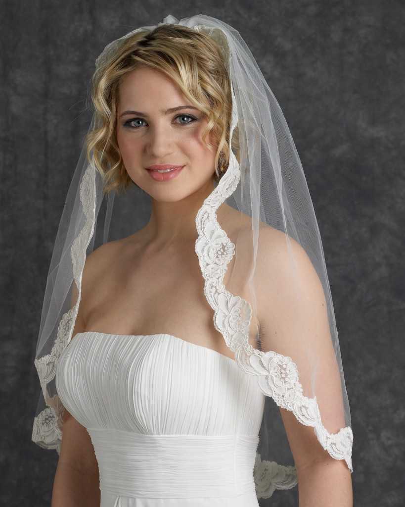 Обычно советуют не использовать короткую фату на недлинных стрижках, однако если вы создаёте дерзкий образ, то это правило можно нарушить.