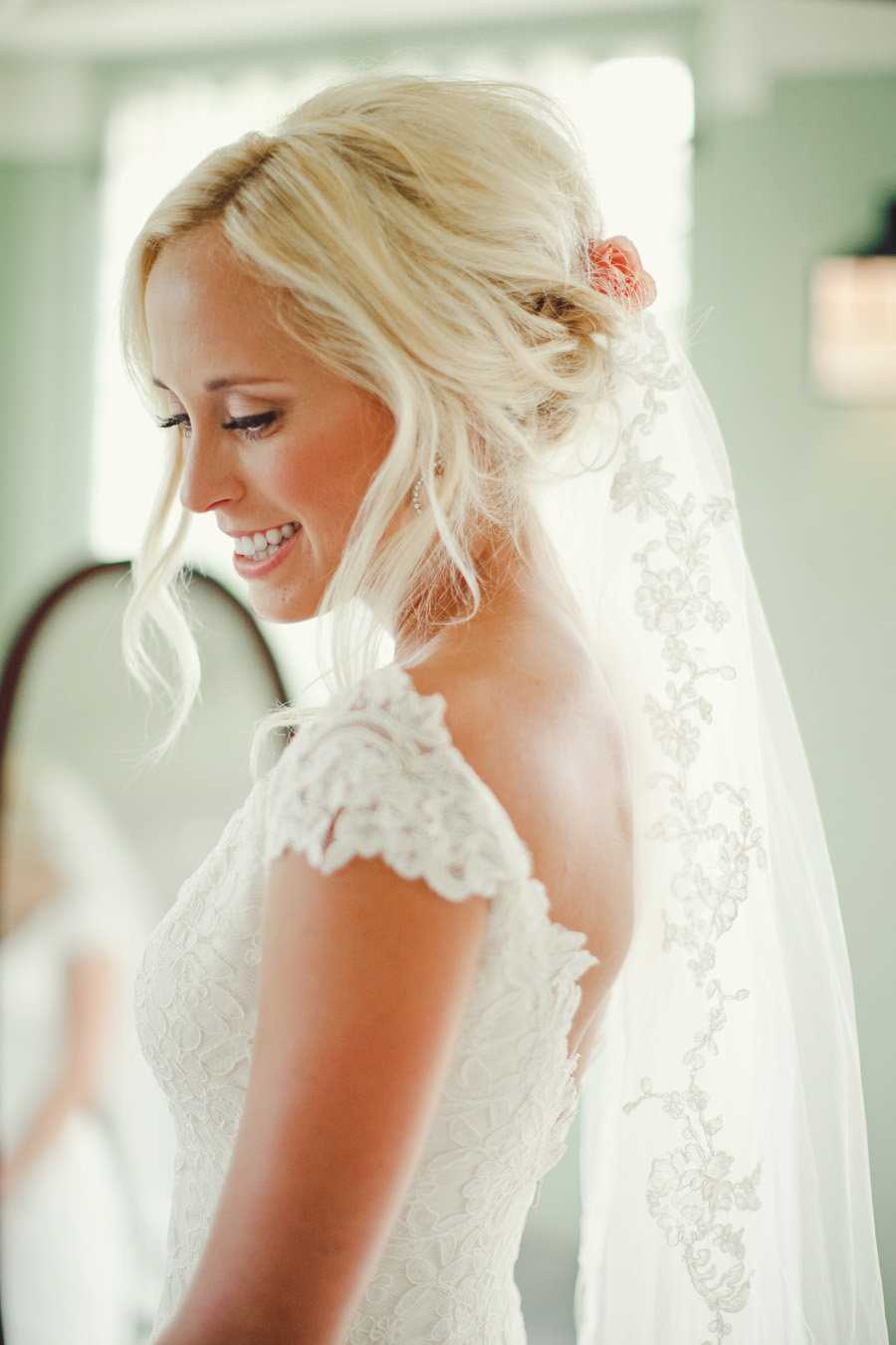 - По желанию невесты сделать укладку — это может быть: свободные волны; гладкая укладка; завитки или начес.