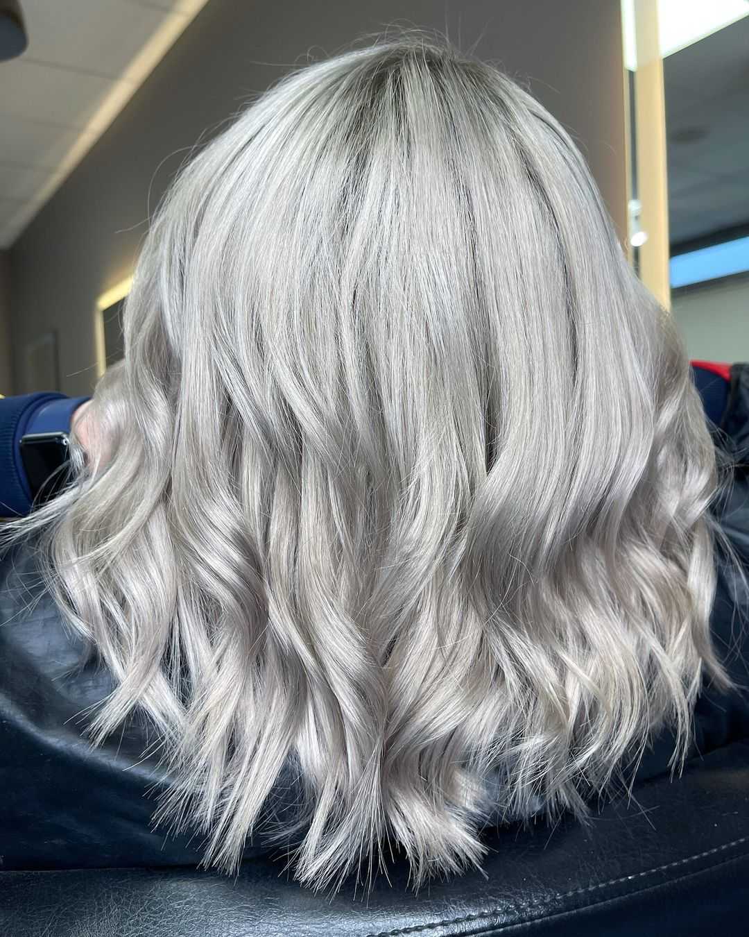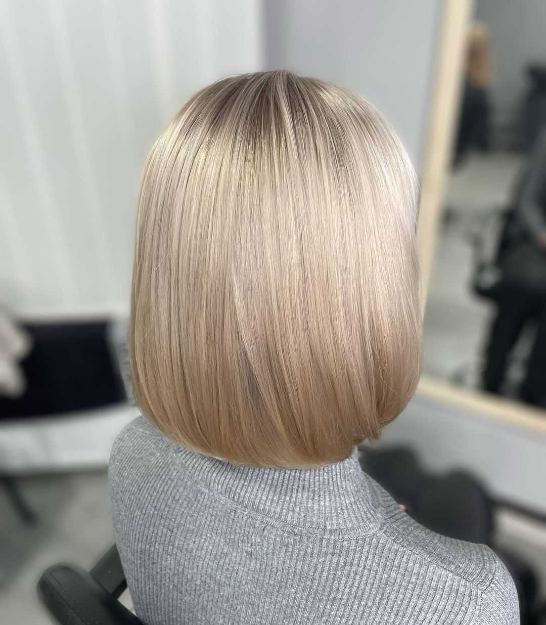 - Пепельный блонд — более холодный оттенок дымчатых светлых волос, который лучше всего подходит для естественно светлых или светло-русых волос. Он очень похож на платиновый цвет волос. Пепел выделяет немного серого, что хорошо видно при правильном освещении. Это один из самых модных цветов блонда 2022 года.
