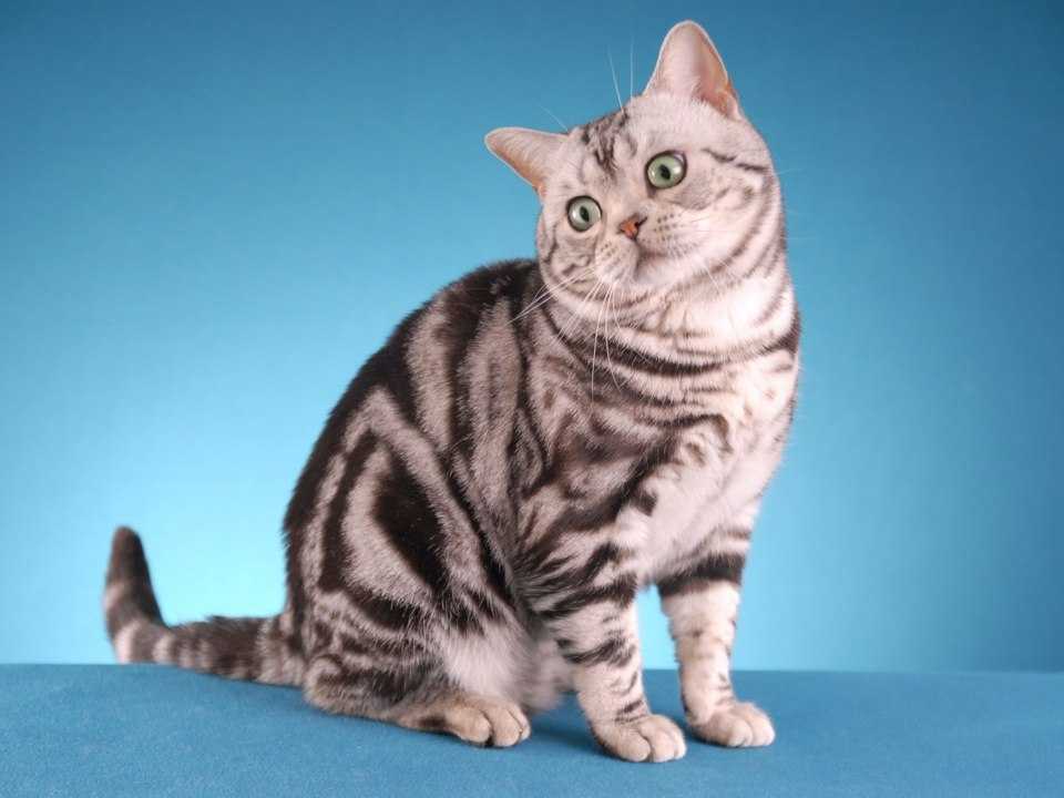 Американские короткошерстные кошки имеют уникальный полосатый окрас. Они обладают мускулистым строением тела и сами по себе достаточно крупные, их вес может достигать 8 килограмм. Эта порода является обладателем самых разнообразных видов окраски, таких как: белый, кремовый, черный и дымчатый, голубой и биколорный. Американские короткошерстные не прихотливы в уходе. Несмотря на то, что эти красивые кошки по своей натуре настоящие мышеловы, в то же время они могут быть замечательными домашними животными. Для того, чтобы кошка себя хорошо чувствовала с ней необходимо играться и заставлять ее как можно больше двигаться, так как эта порода предрасположена к ожирению. Также этот вид не требует к своей персоне особого внимания. Пока хозяин занят, животное с легкостью найдет занятие, которым сможет себя увлечь.