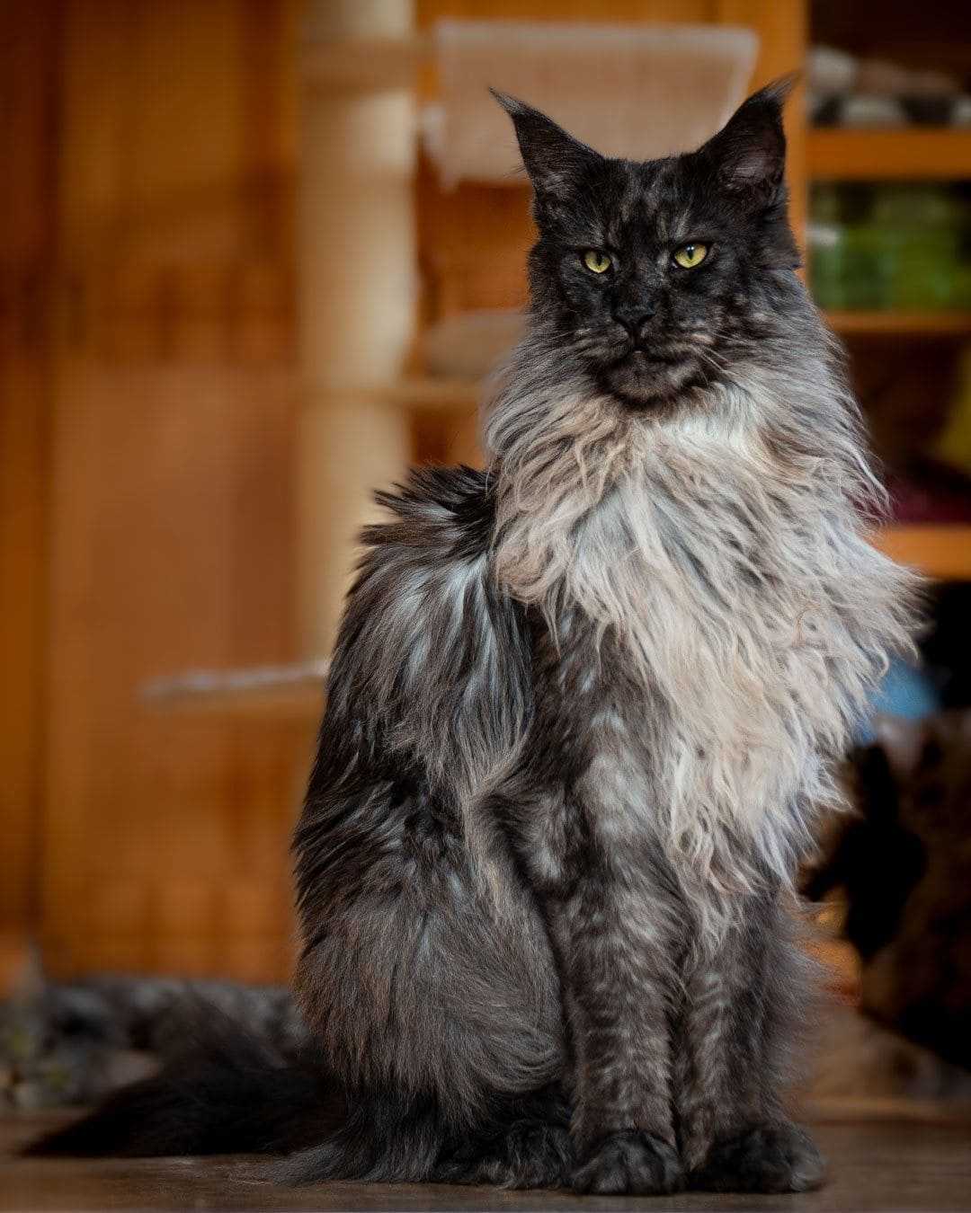 Это пушистое, гигантское великолепие называют «кошкой с кошкой на хвосте». И вполне обоснованно: хвостище у мейн-кунов знатный, по длине и лохматости не уступающий его владельцу.