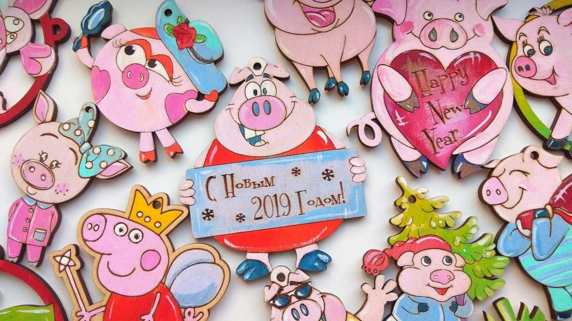 - Свинка оценит, если вы украсите елку в 2019 год своими руками. Свяжите миниатюрные варежки, снеговика или свинку, вырежьте из дерева снежинки, украсьте стразами и бусинками новогодние шары. Любое творчество Свинке понравится, так что ожидайте в следующем году благополучия и финансовых успехов.