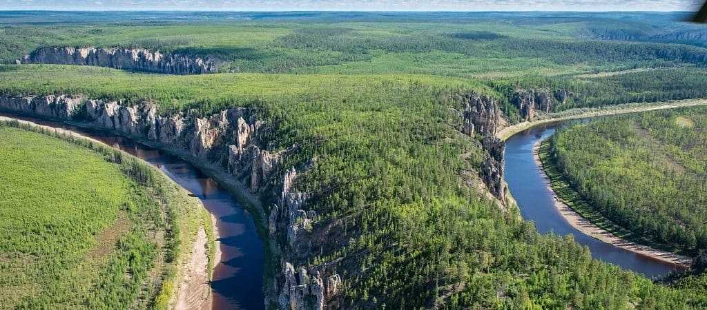 - Лена: река с женским именем считается самое длинной в России, но известна она не за свою протяженность, а за живописные берега. Весь бассейн располагается в зоне вечной мерзлоты, поэтому берега густо поросли хвойными деревьями и мхом. На карте устье Лены выглядит, как огромное дерево за счет того, что в месте впадения основное русло делится на несколько сотен небольших рукавов.