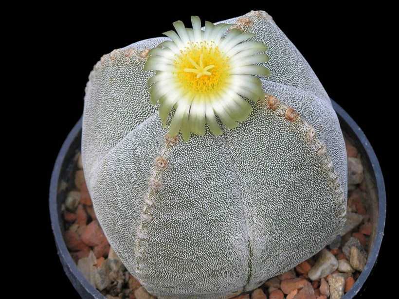 Ариокарпусы – с низкими, приплюснутыми стеблями, пазухи удлиненных бугорков наполнены пухом, потрясающе красиво цветут.