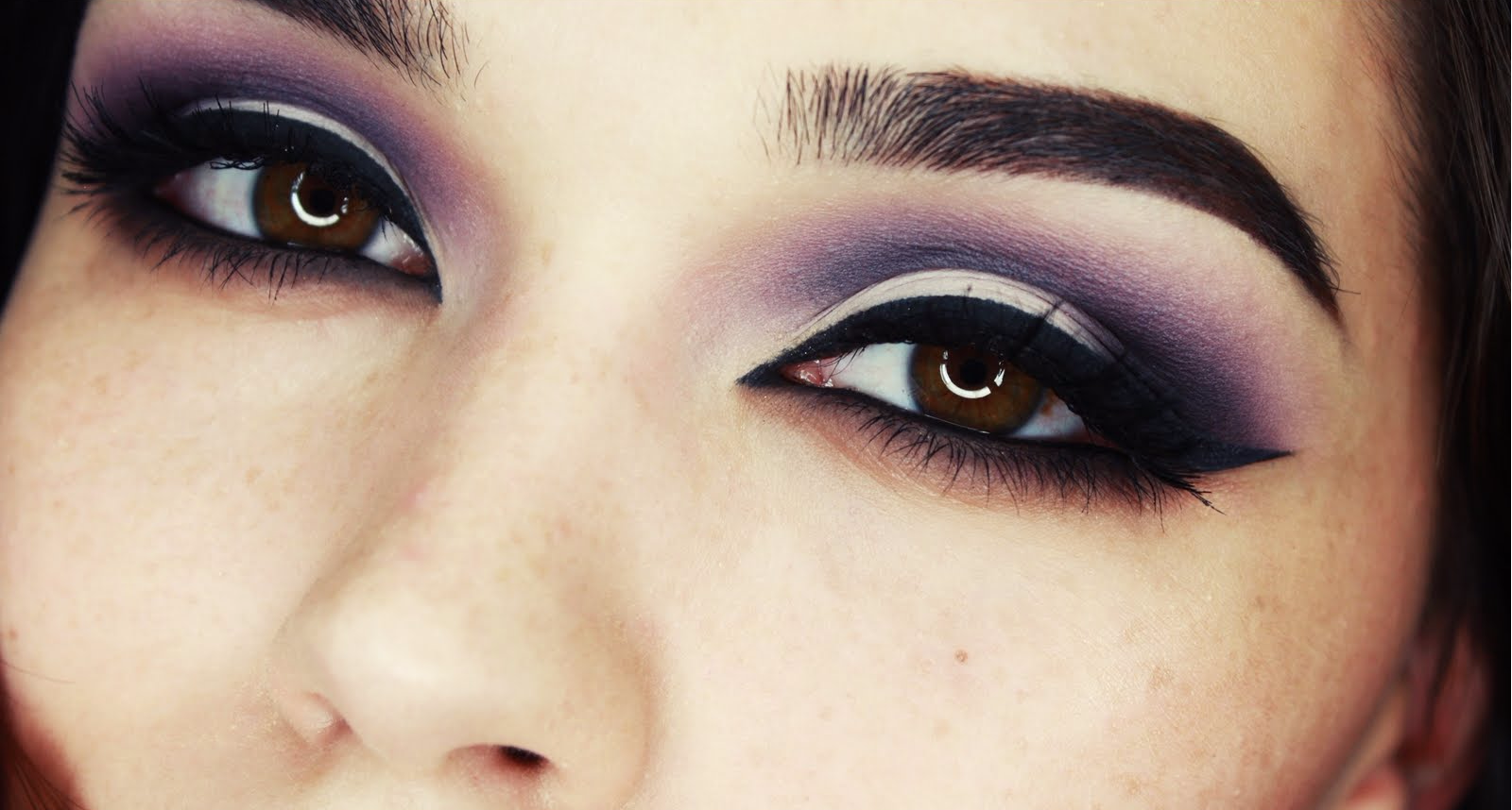 - чистой кистью наберите тени фиолетового оттенка и нанесите их прямо на нарисованную чёрную линию. Растушуйте цвет, чтобы избавиться от резких переходов;