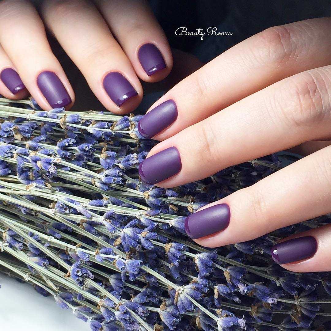 Фиолетовый и его оттенки — несомненный тренд нынешнего сезона. Миндальные ногти как нельзя лучше подходят по этот цвет лака. Выбирайте идеи — матовое покрытие, самые разные дизайны или блестящий глянец — все это будет на пике моды.