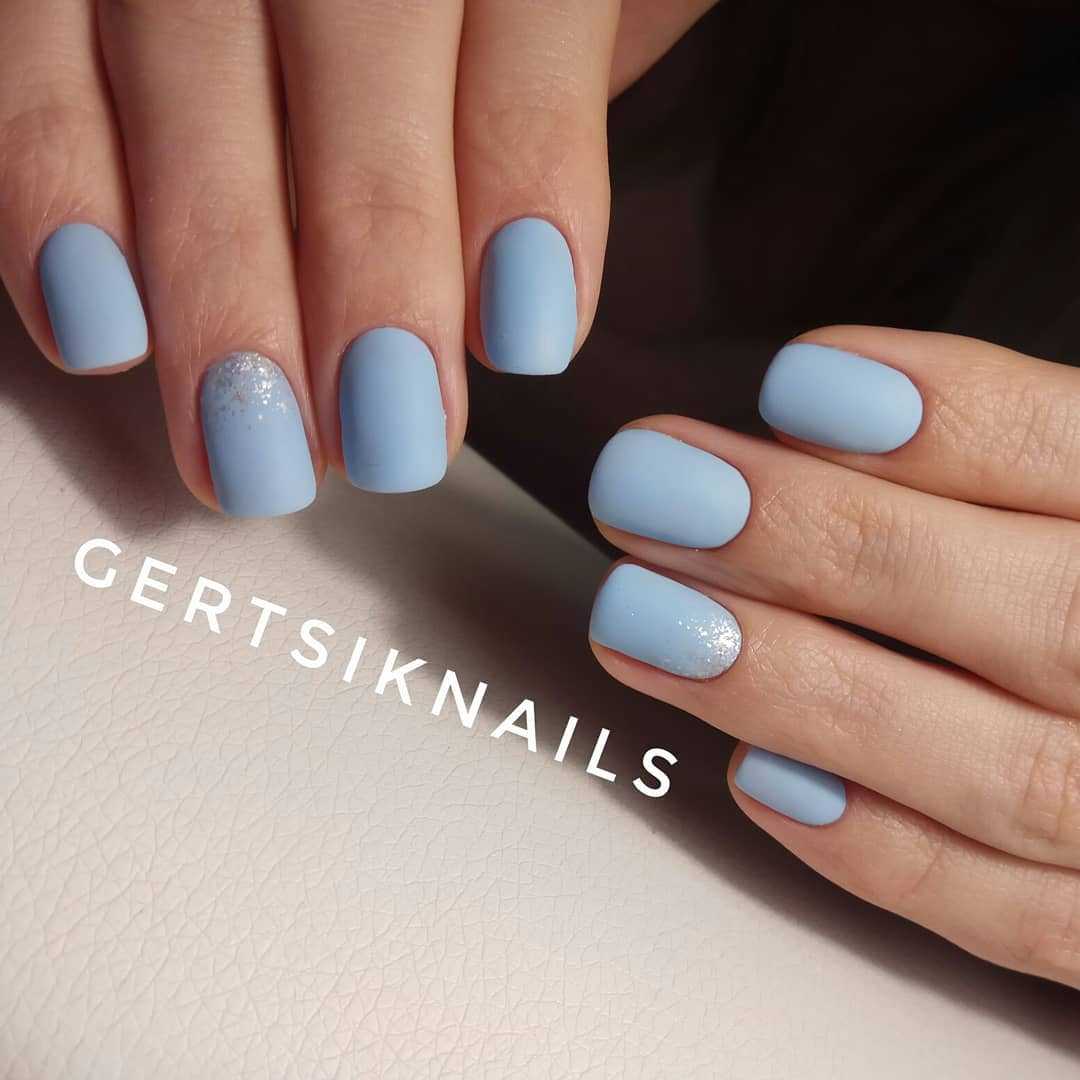 Пыльный, нежный и спокойный оттенок синего — лучшее украшение для ваших ноготков.