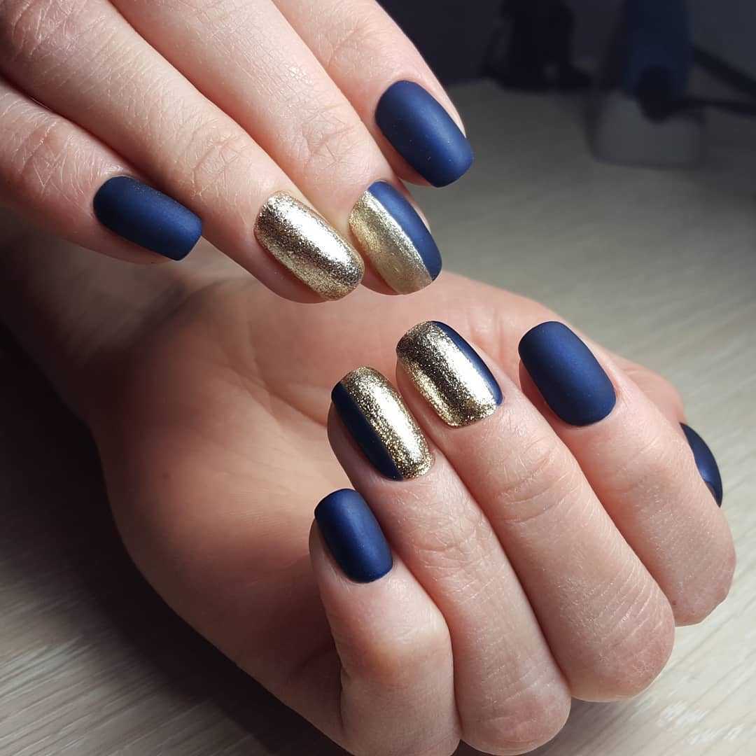 Благодаря сочетанию светлого или темного матового шеллака с золотыми элементами получается элегантный и утонченный дизайн.