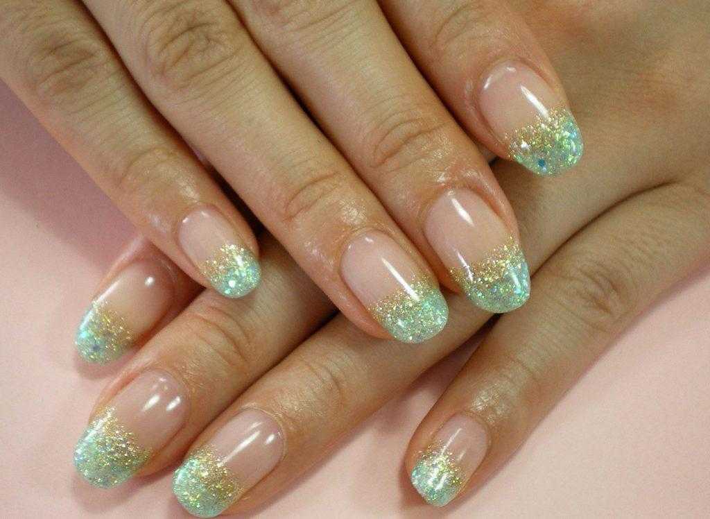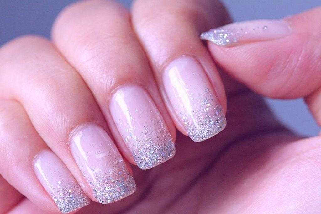 Ну и блестки, куда же без них. Омбре с золотом или серебром сделает кончики ваших ноготков искрящимися и нарядными.