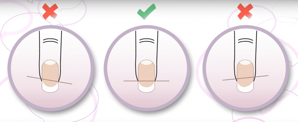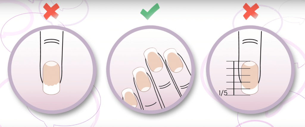 Ширина зоны улыбки зависит от длины ногтей и должна быть им пропорциональна: