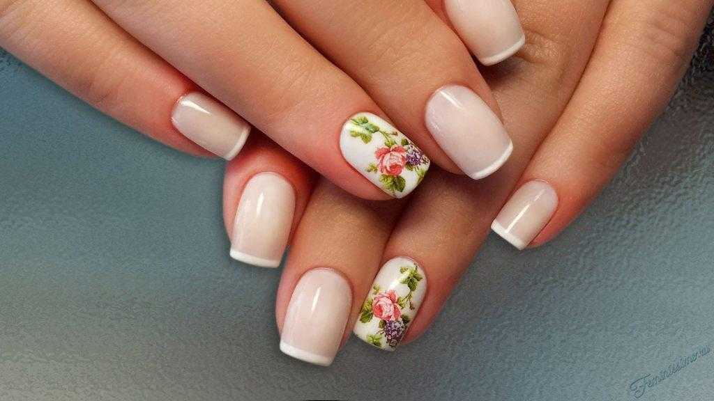 Френч хорошо выглядит на коротких ногтях с квадратной формой, он легко придает им естественность и ухоженность. Для коротких ногтей используют геометрический и цветочный рисунки, а также яркие цвета.