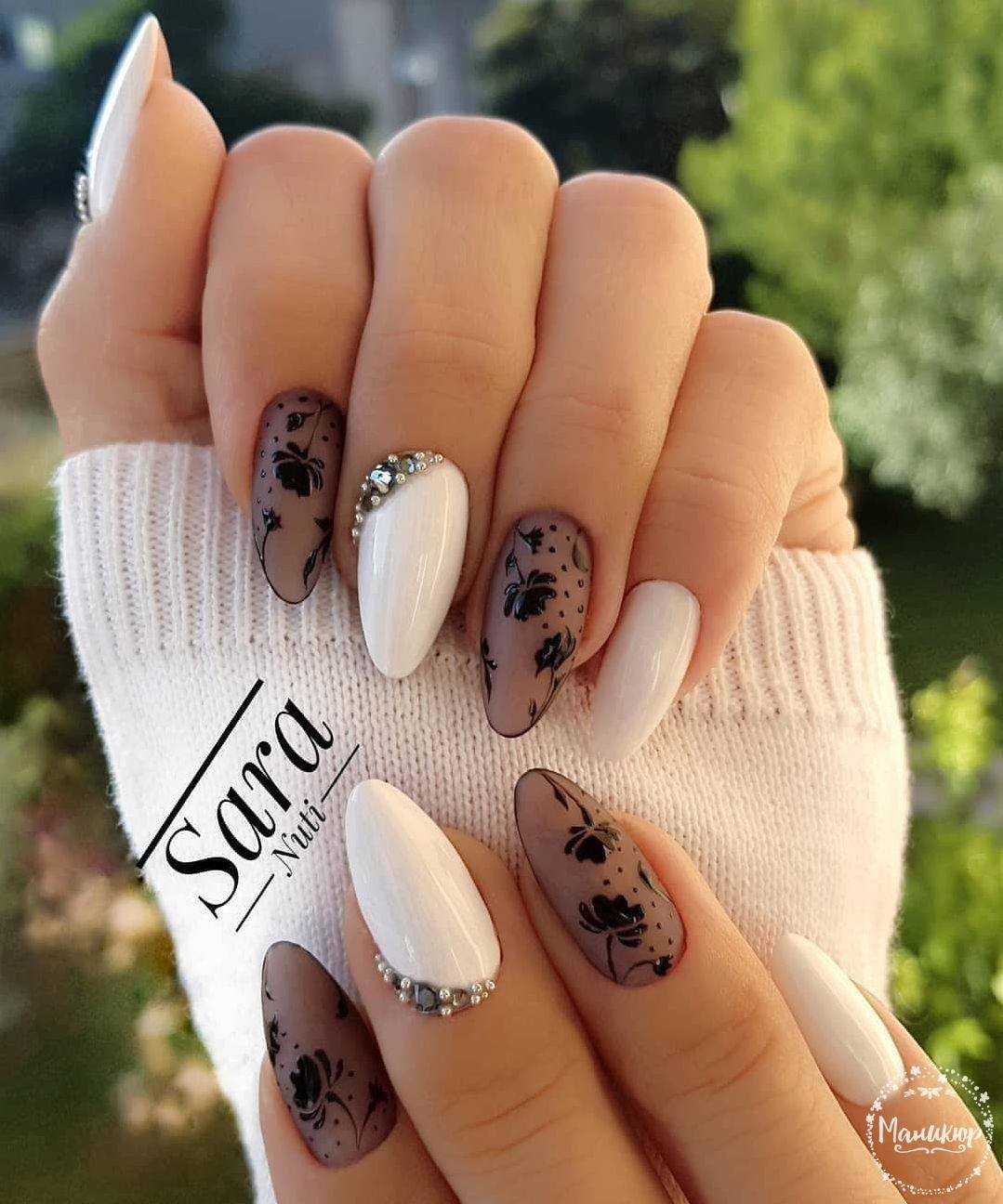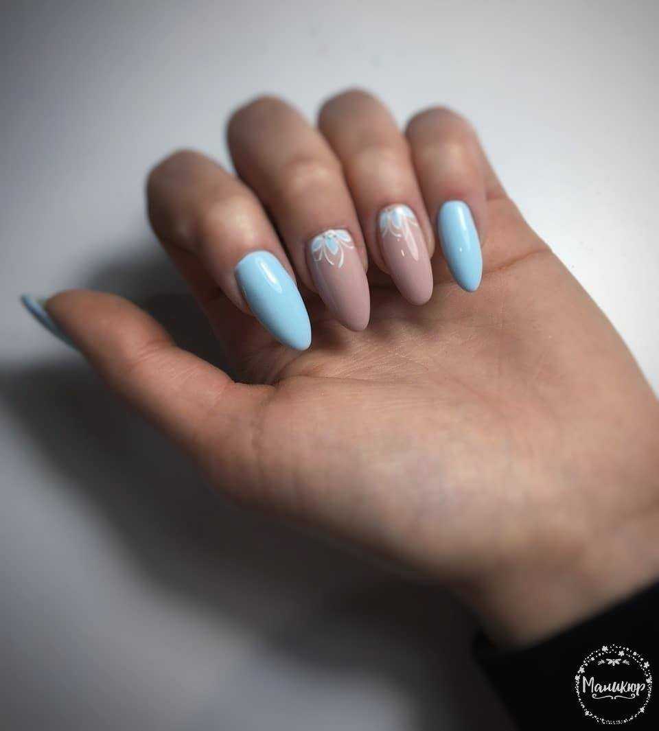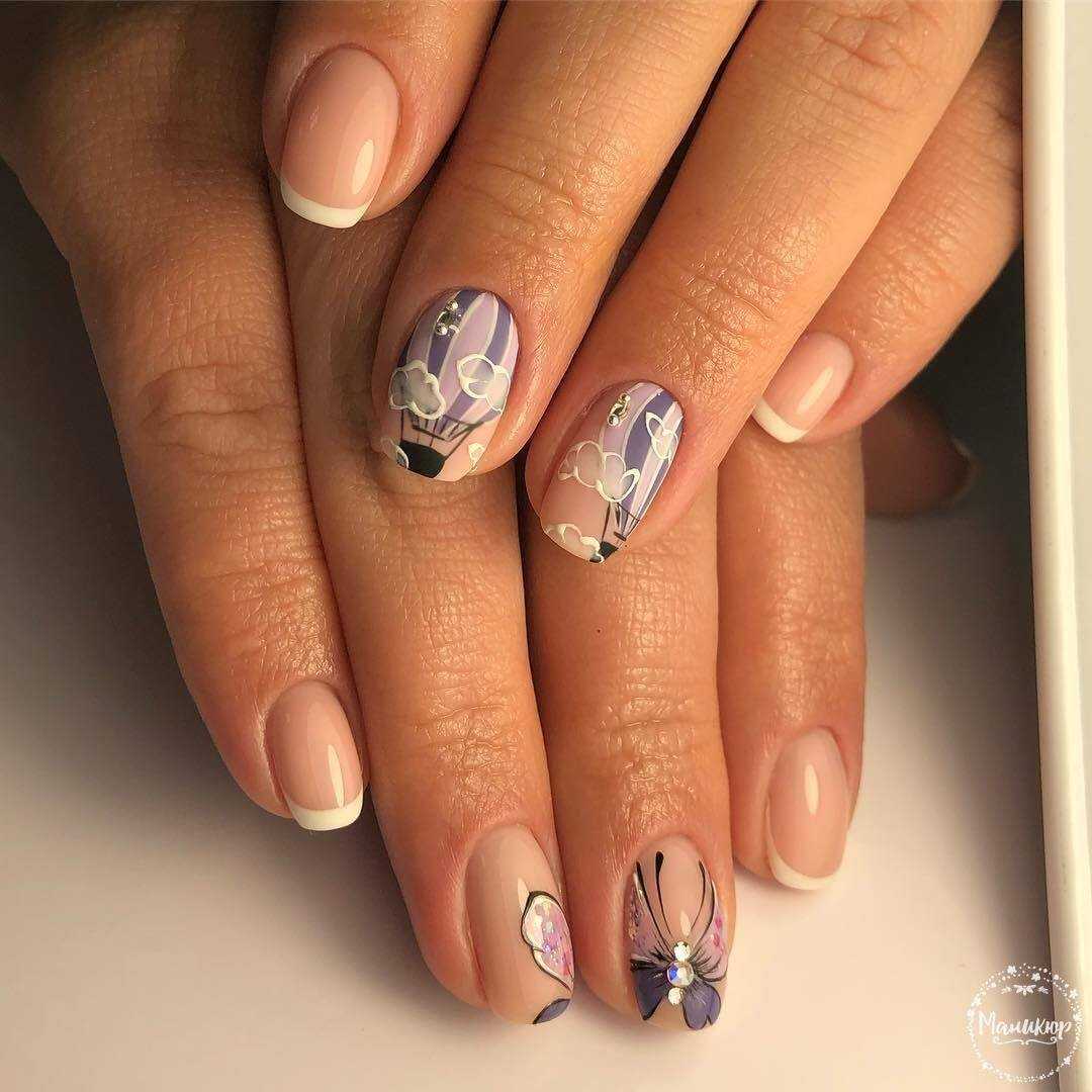 Любительницы комфорта в повседневной жизни предпочитают короткую длину ногтей. В сочетании со светлым покрытием маникюр смотрится натурально и невероятно красиво. В то же время отметим, что выбранная длина вовсе не станет препятствием в случае, если вы хотите сделать дизайн. Опытный мастер всегда адаптирует рисунок с учетом особенностей ногтевой пластины. Поэтому экспериментируйте с сочетанием и смело используйте декоративные детали. Только представьте, насколько прекрасно смотрится пастельное покрытие с цветочным рисунком и стразами. Такой маникюр определенно может стать идеальным выбором для вечернего мероприятия. Отлично смотрится матовая фактура светлого оттенка лака. Но учитывайте, что в данном варианте роспись должна быть еле заметной, минималистичной.