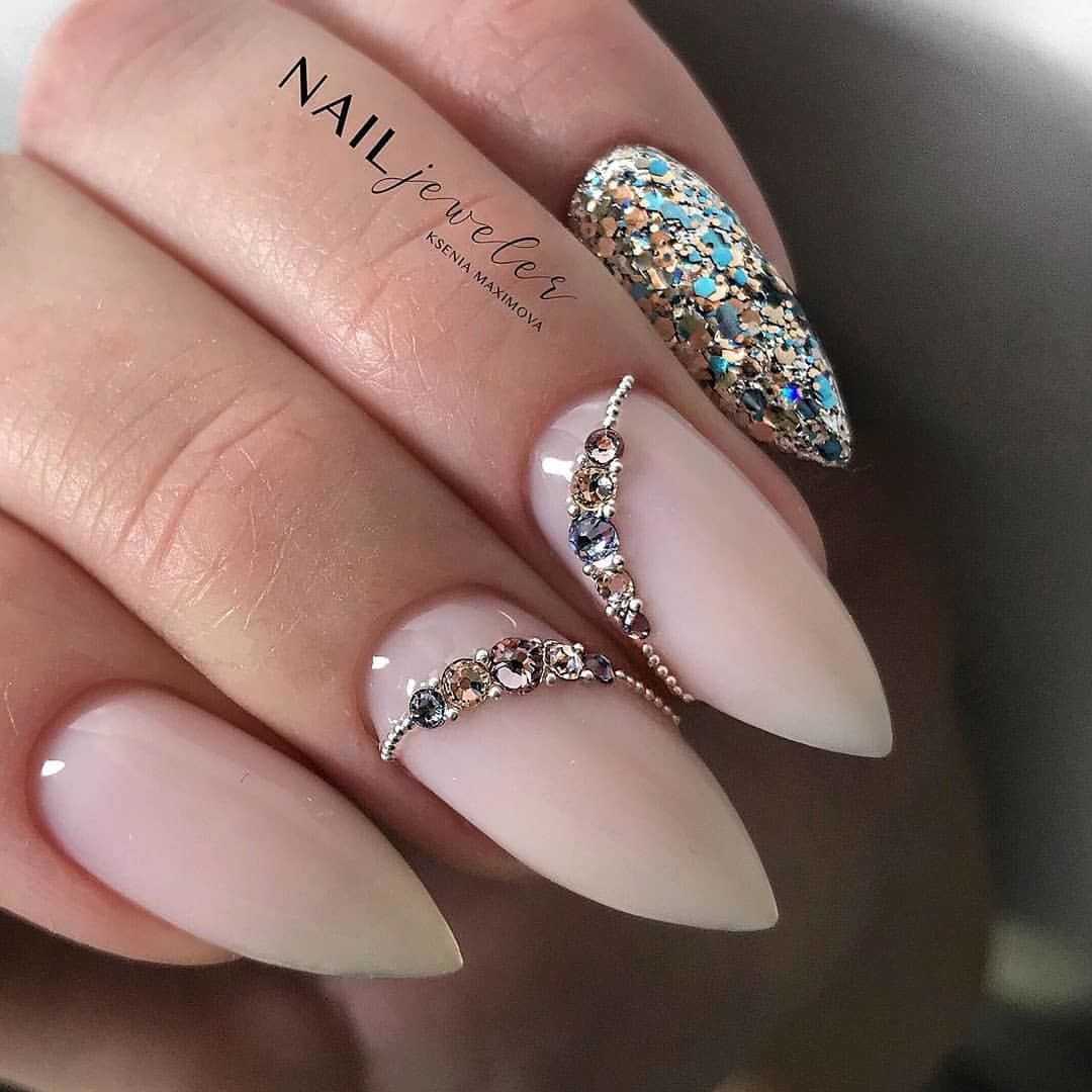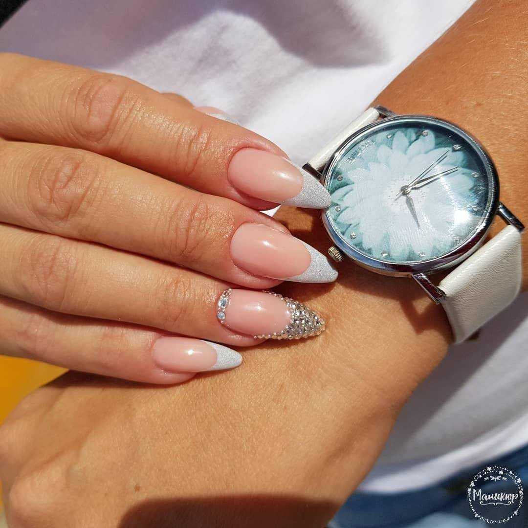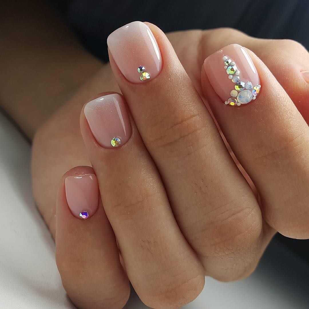 И в этом случае при желании оформить нежный нейл-дизайн со стразами очень важно не перегрузить ноготки, а наоборот, подчеркнуть их изысканность и утончённость. Вам остаётся только определиться с оттенком и украсить основание при помощи камней, полусфер либо бусин