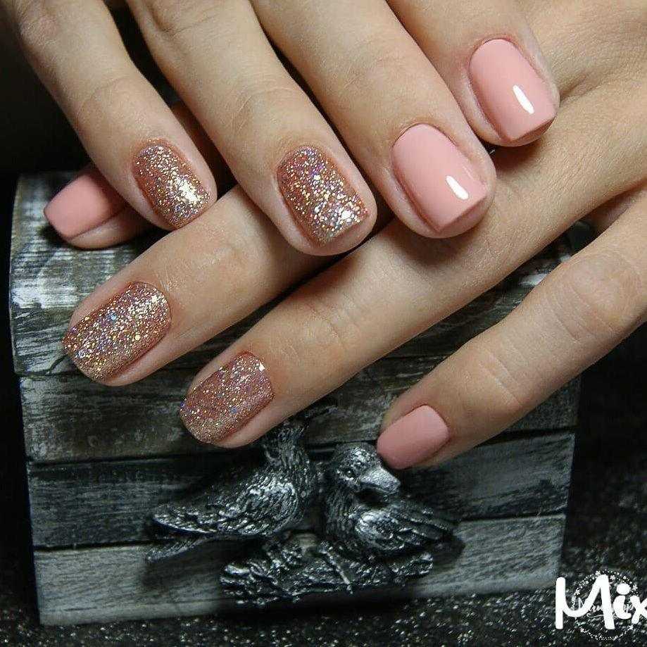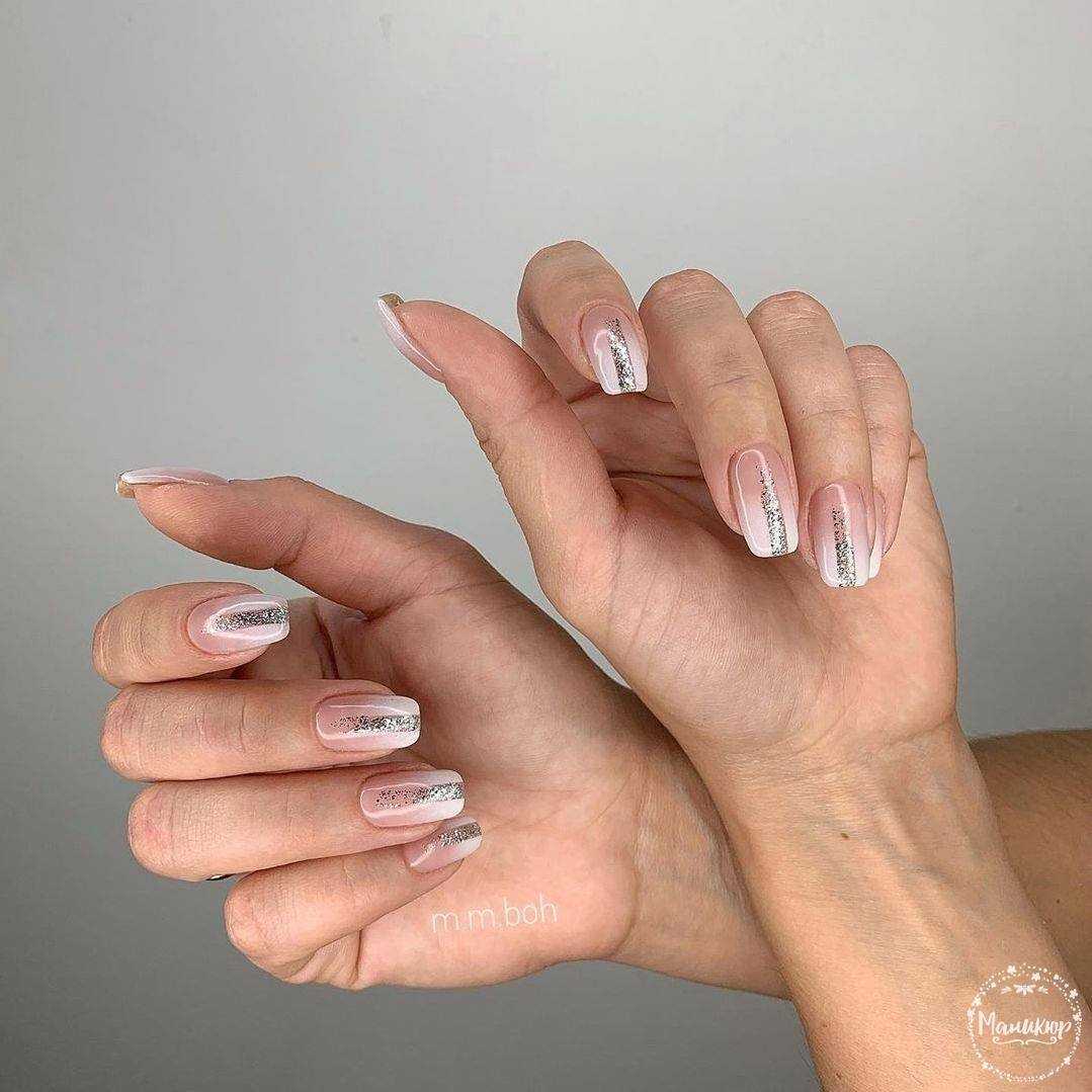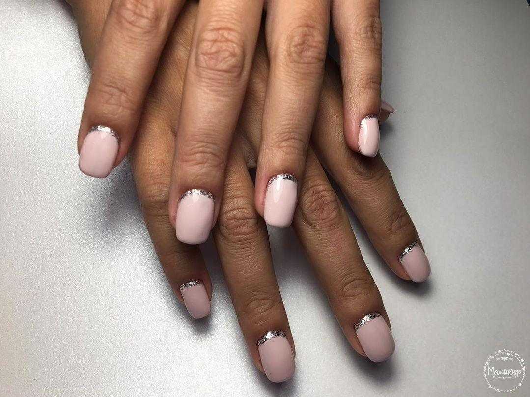Единственным исключением являются мелкие серебристые блески. Ими можно дополнить сдержанный бежевый маникюр. Серебристыми блесками можно покрыть сразу несколько ногтей на руке, чередуя их с матовым или глянцевым телесным лаком.