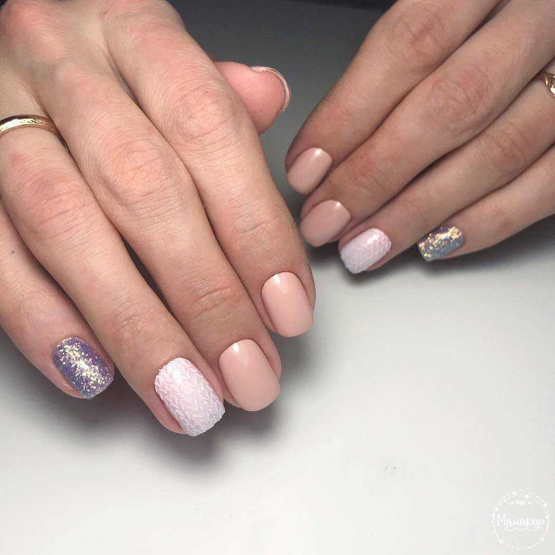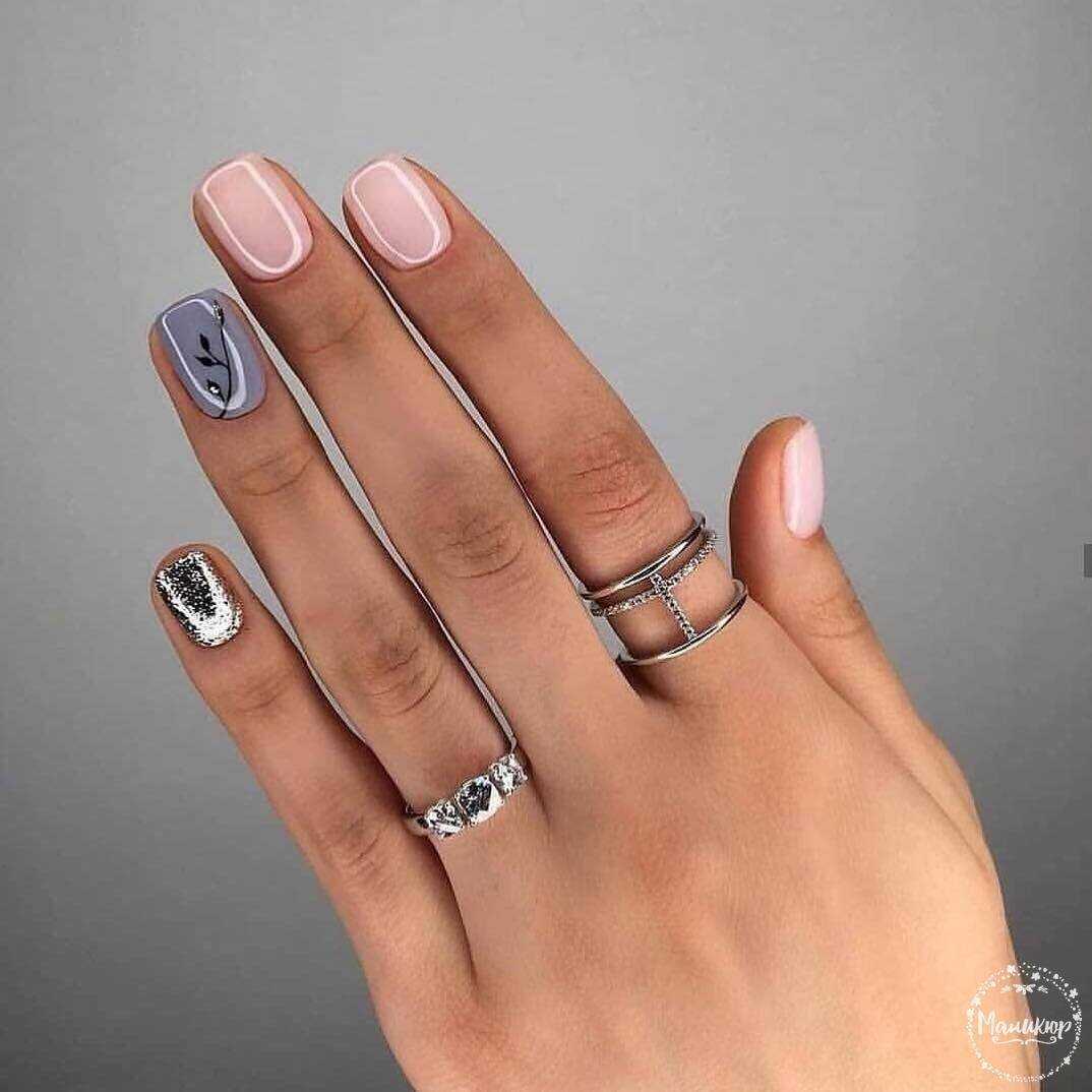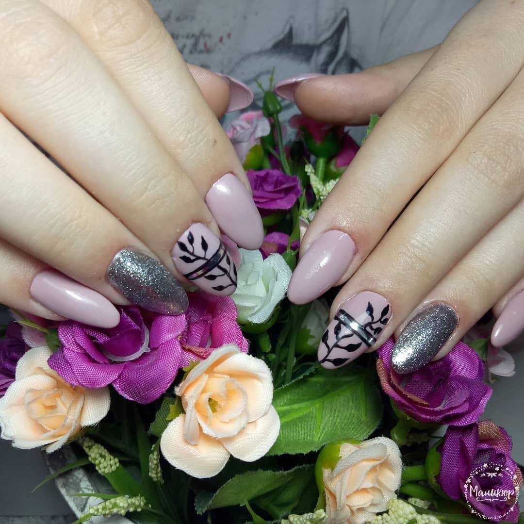 Единственным исключением являются мелкие серебристые блески. Ими можно дополнить сдержанный бежевый маникюр. Серебристыми блесками можно покрыть сразу несколько ногтей на руке, чередуя их с матовым или глянцевым телесным лаком.