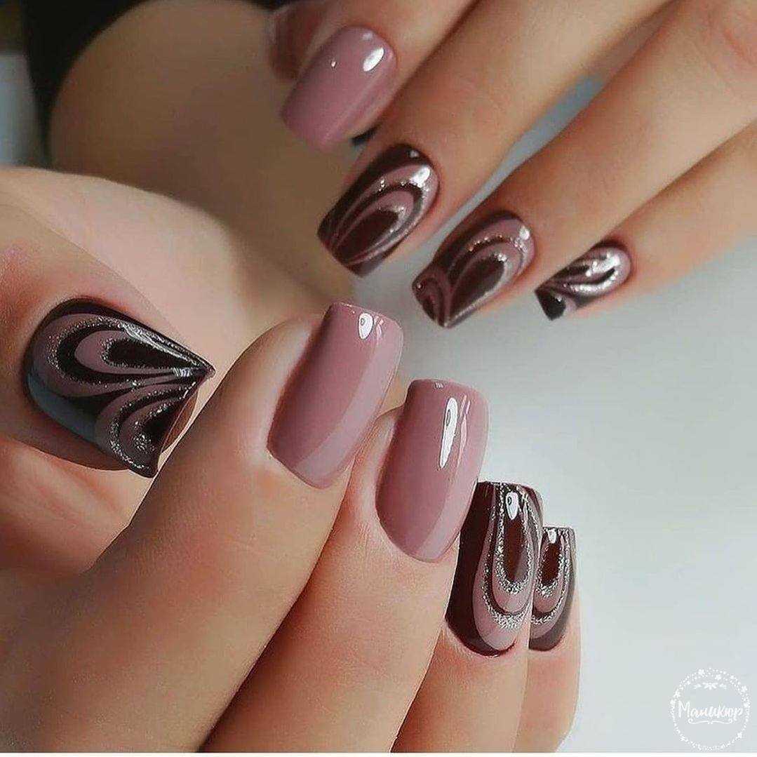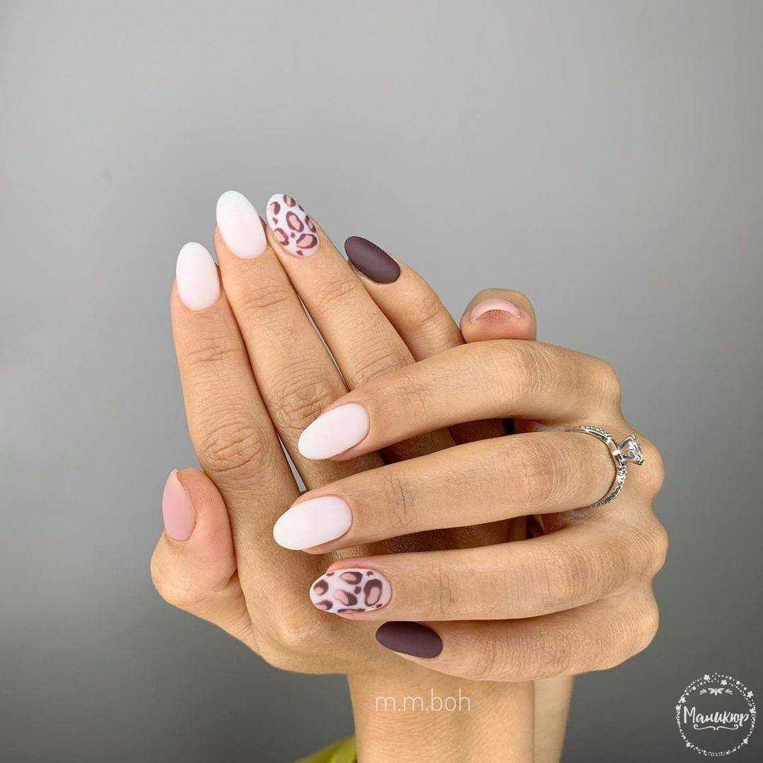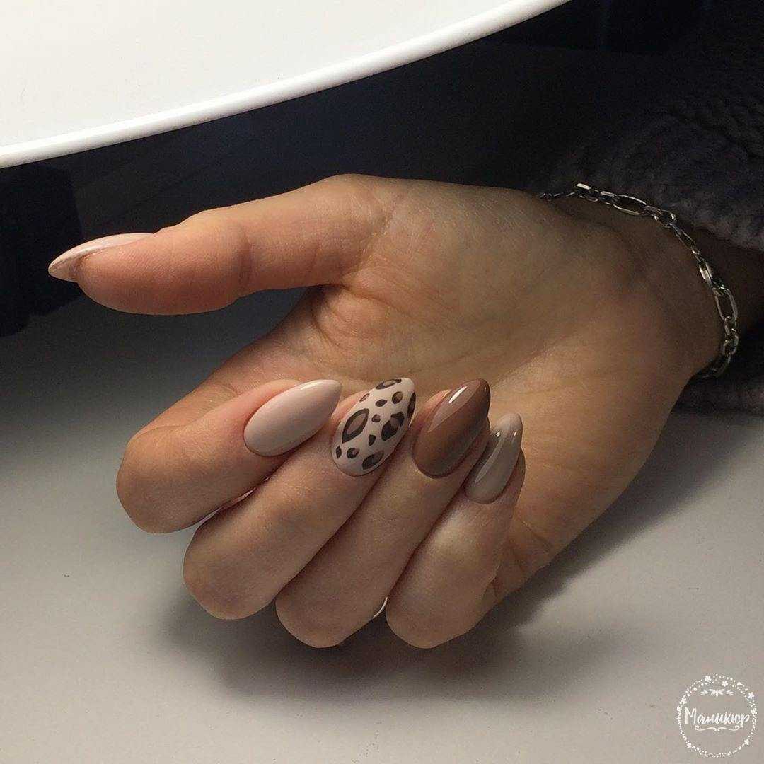 Так как бежевый цвет прекрасно сочетается с различными цветами, то можно выполнять рисунки любого понравившегося тона. Не менее оригинальным решением стали и элегантные кружевные мотивы белого или черного цвета. Для скромного и умеренного маникюра можно использовать рисунки в стиле минимализм, которые не перегрузят дизайн и немного разнообразят его. Без сомнения, можно наносить на ноготки различные анималистические принты, геометрические фигуры или нежные узоры.