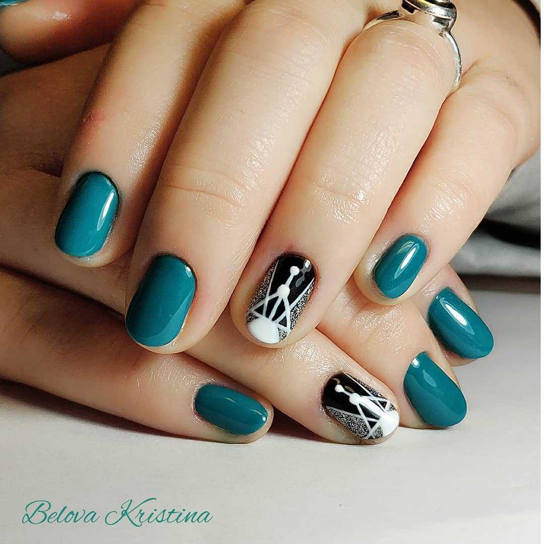 Геометрический маникюр в бирюзовом цвете на короткие ногти 2020