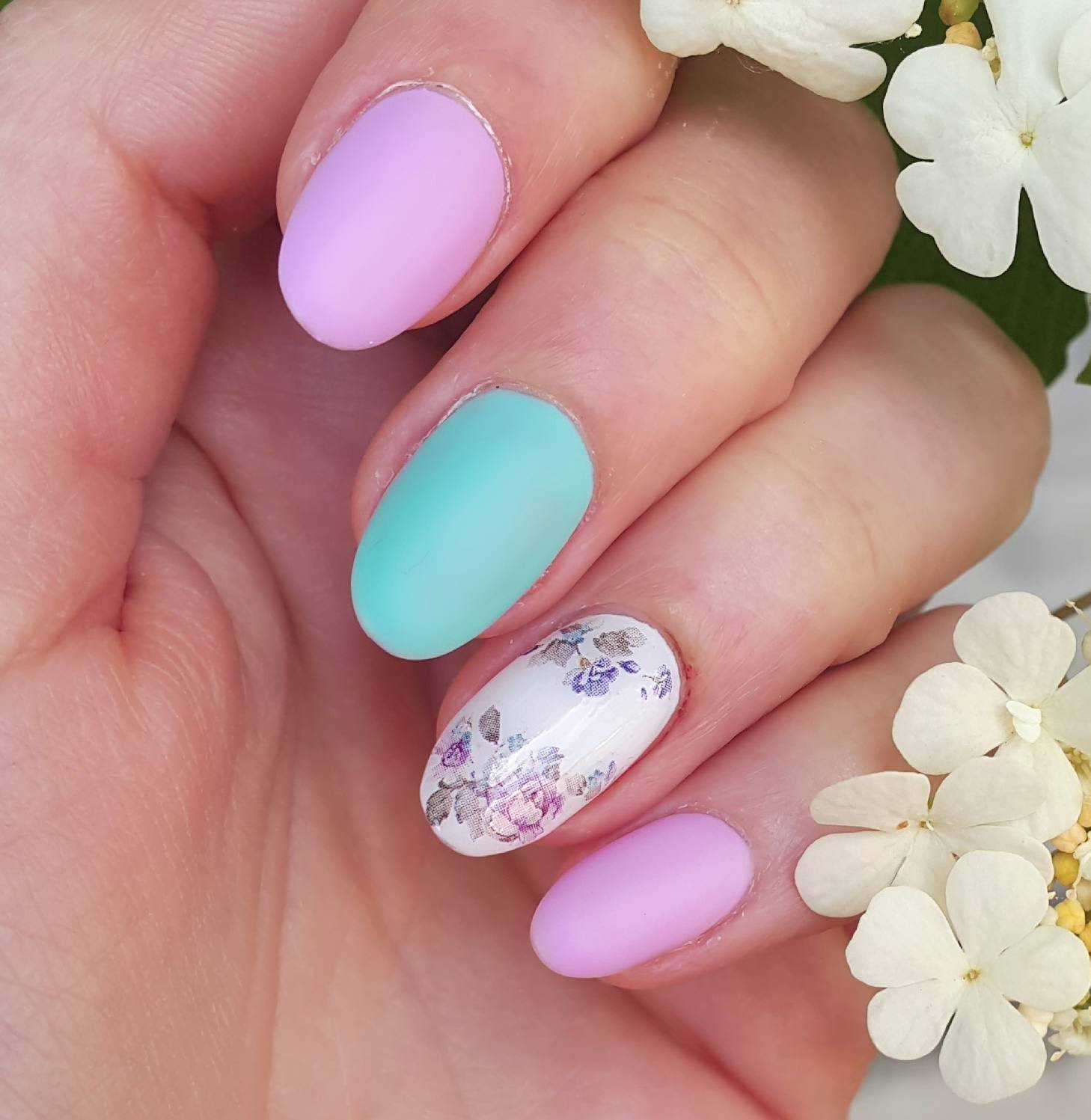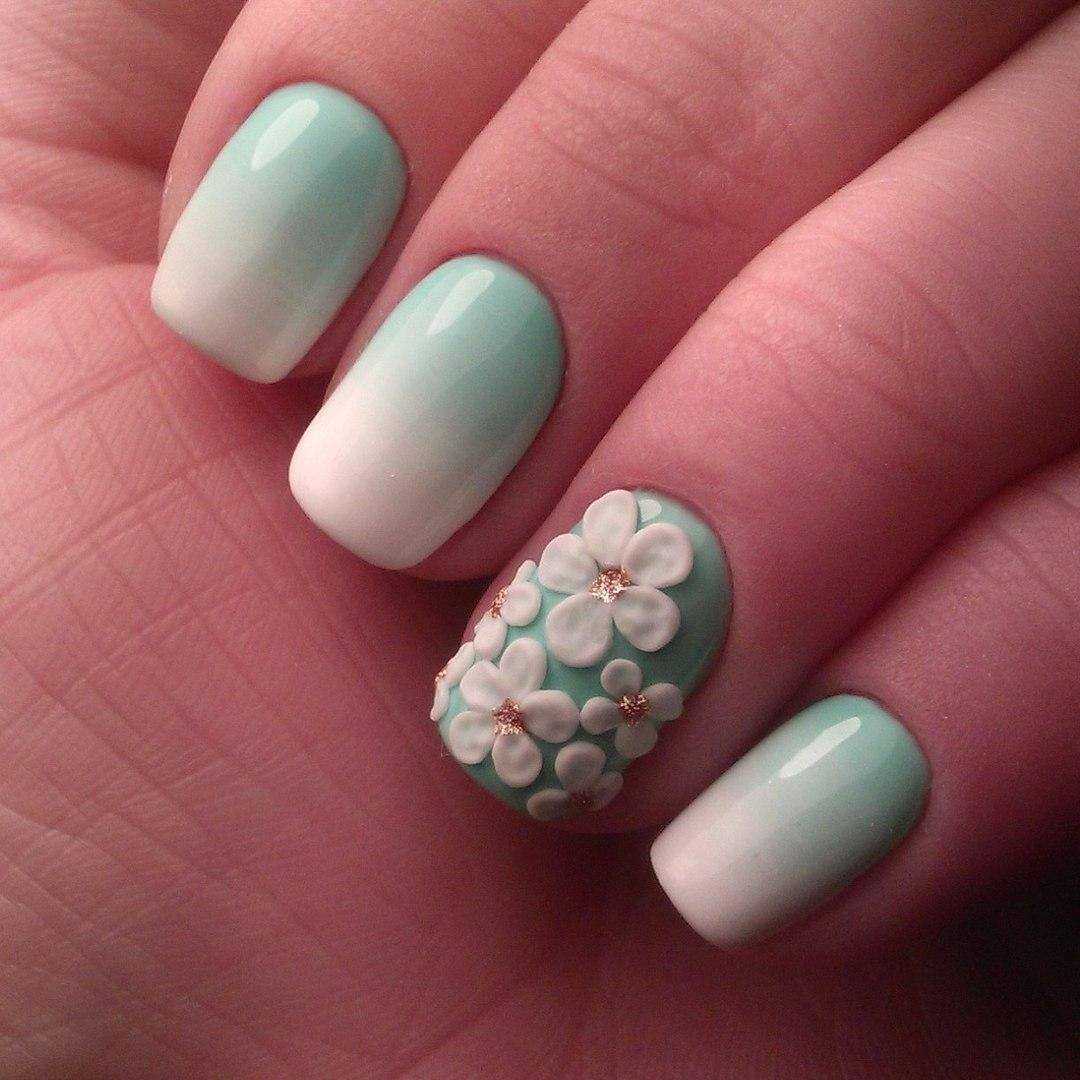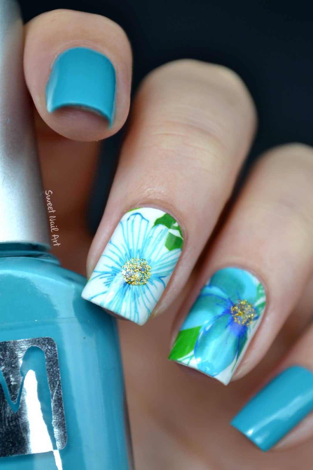 Вариантов маникюра с цветами огромное количество, поэтому экспериментируйте с узорами, добавляйте к бирюзовому светлые и темные тона и ваш маникюр перестанет быть простым и тривиальным.