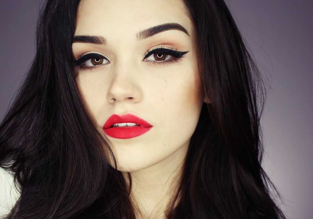 1.Классические красные губы. Вы знаете, что маленькое черное платье с матовыми ретро-красными губами — это вневременная комбинация? Подведите глаза тонкой стрелкой, затем наложите мягкий бежевый оттенок теней и нанесите матовую красную помаду. Глаза можно оформить в дымчатых тонах.