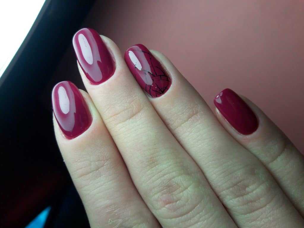 Такой маникюр притягивает к себе внимание окружающих именно из-за насыщенного, глубокого оттенка. Его главная особенность в том, что на ногтях он смотрится менее вызывающе, нежели классический черный