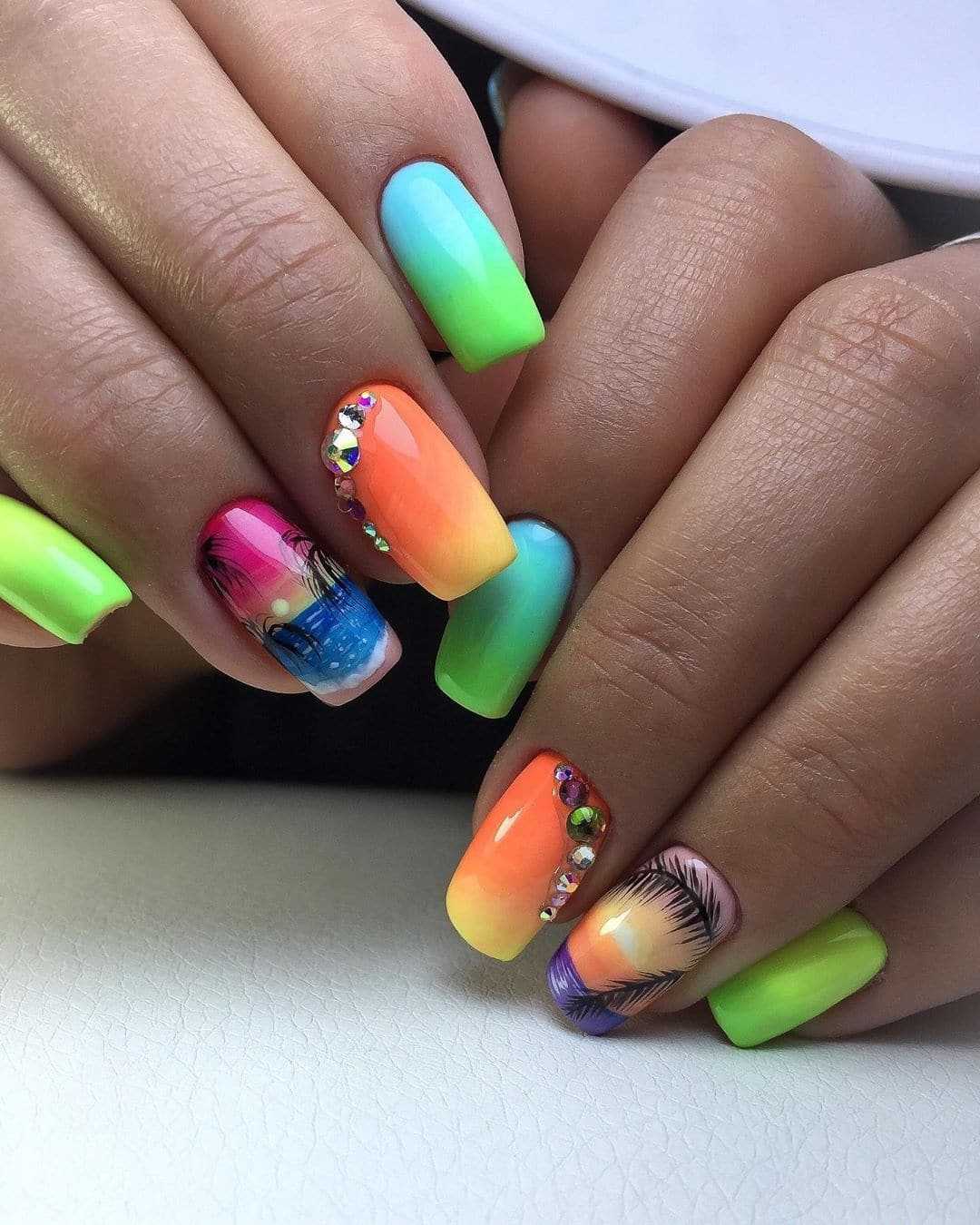 Маникюр на квадратные ногти: тематический дизайн на лето 2020
