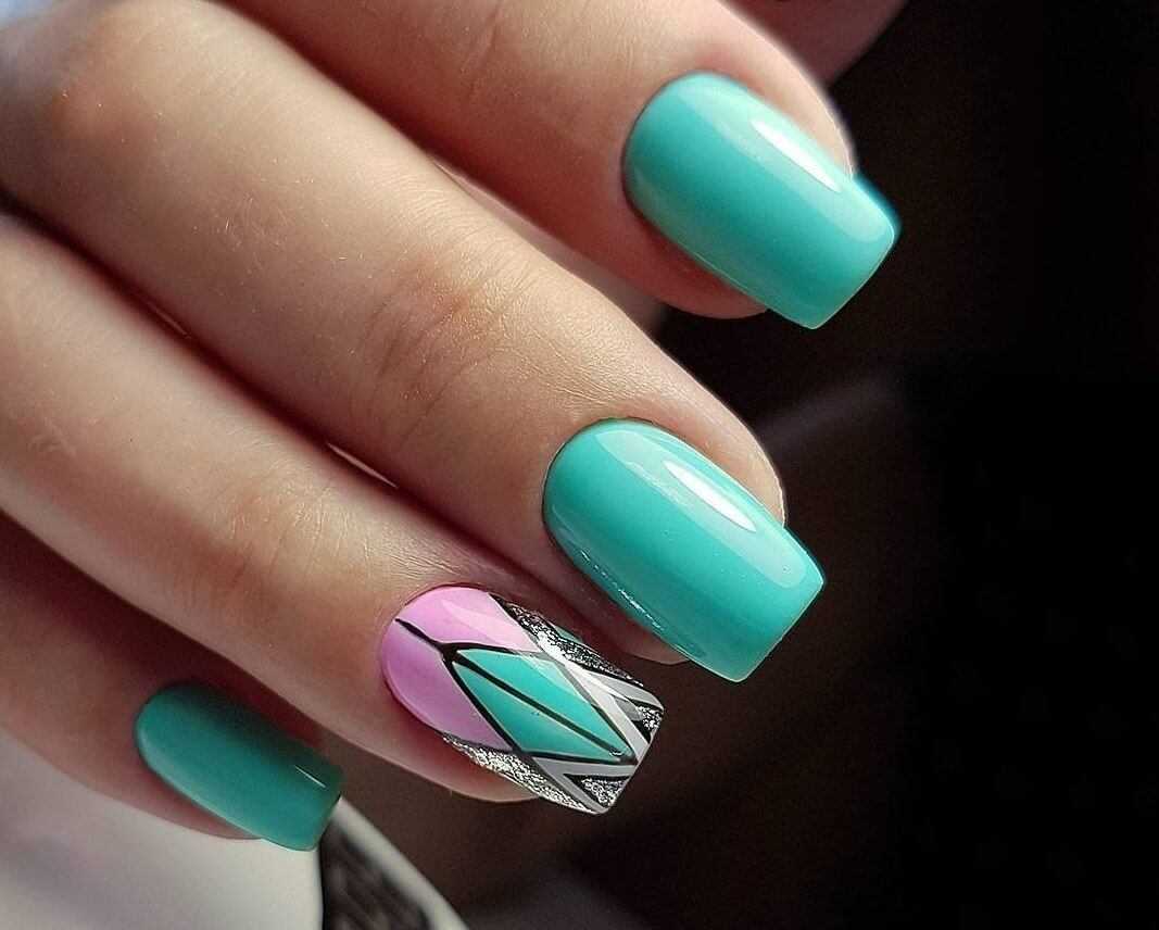 - геометрия – квадратная форма предполагает использование линий, ромбов, треугольников и других форм для декора ногтей