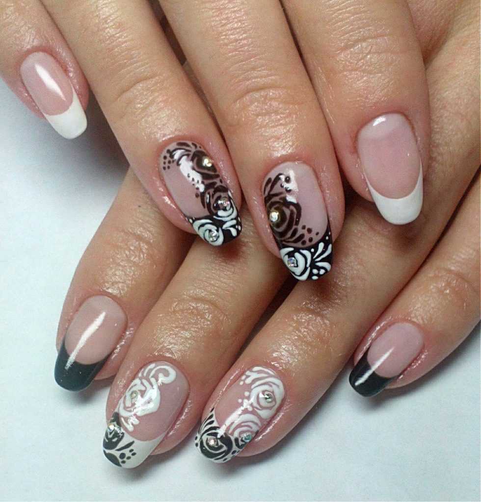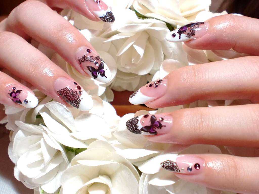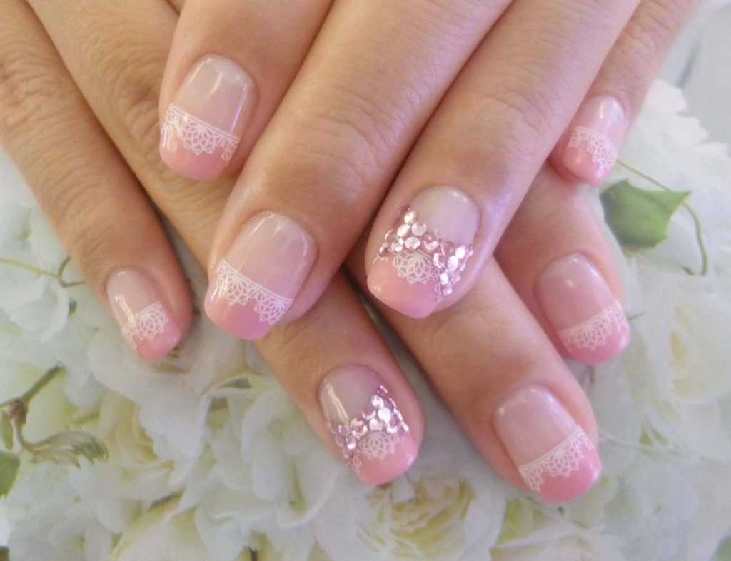 Эффектности кружевному маникюру помогут придать и стразы, а также и применение разных подходов маникюрного дела – френча, маникюра с лунками, омбре, росписи.