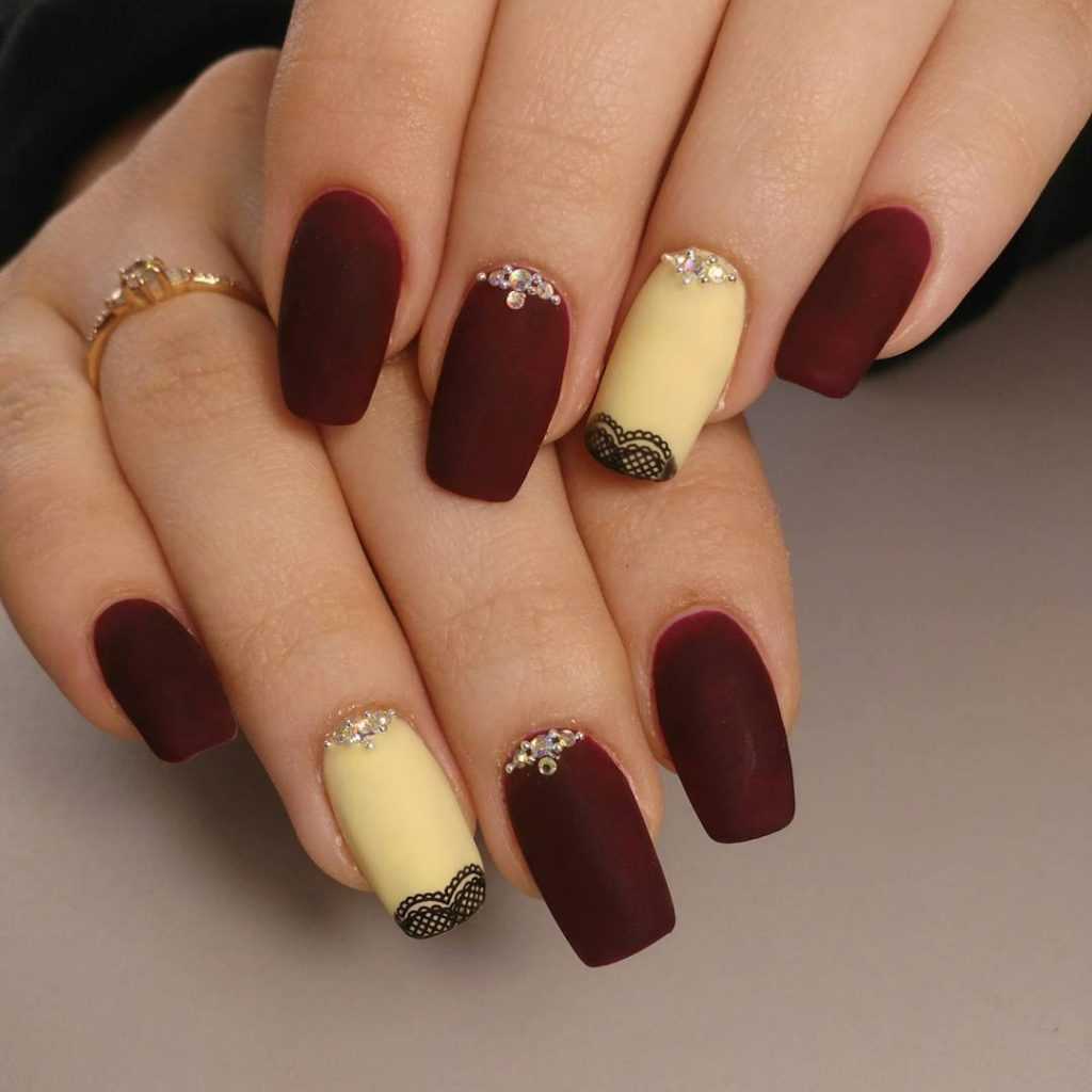 Глубокие также приветствуются – сливовый, баклажанный, винный, черный, что придаст кружевному нейл-арту загадочности.