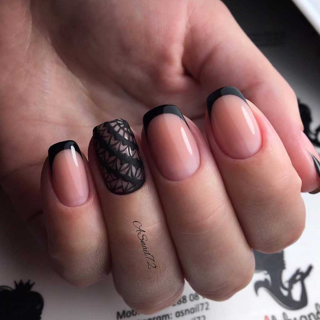 Для украшения коротких ногтей элементы должны быть более мелкими, чем для длинных, так они будут выглядеть более гармонично. Нарядно, но не вычурно, смотрится маникюр с черным кружевом, например французский или лунный. Кружевом могут быть украшены не все ногти, а только несколько избранных. Причем вы можете нанести на каждый ноготь свой узор, это тоже будет выглядеть интересно и оригинально. Это те варианты нейл-арта, которые всегда хорошо будут смотреться, если вы предпочитаете короткие ногти.